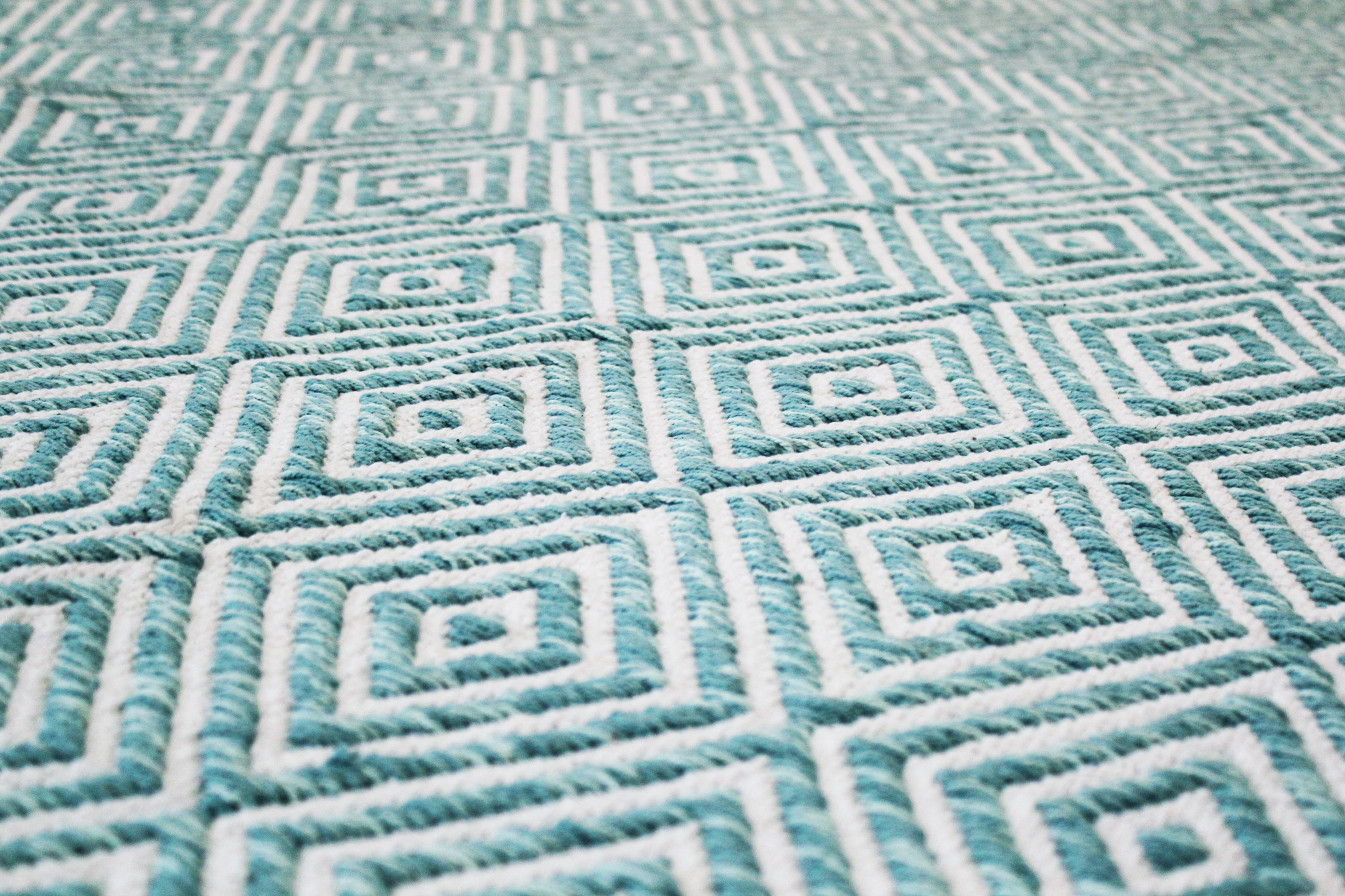 Ein handgewebter Baumwollteppich mit weicher Haptik, der einfach nur fasziniert. Seine Struktur und seine schöne türkise Farbe sind eine ideale Bereicherung für ein gemütliches, in natürlichem Material gehaltenes Wohnambiente. Der liebevoll per Hand gewebte Teppich versprüht ein faszinierendes Flair im ganzen Zuhause. Seine zurückhaltende Rautenoptik beeindruckt durch abwechselnde Strukturen, während die warmen Farben in jeder Räumlichkeit höchst gemütlich wirken. Da diese Schmuckstücke aufgrund der Handfertigung etwas unterschiedlich ausfallen können, erhalten Sie mit jedem Teppich nahezu ein Unikat. Qualitativ hochwertig und günstig! Erleben Sie die Vielfältigkeit dieses Baumwollteppichs hautnah und bestellen Sie jetzt. Die kurze Lieferzeit macht die Shoppingfreude noch größer. Dieses Multitalent wird es Ihnen beweisen - Der Traumteppich ist ein Highlight, passend zu jedem Interieur. Peppen Sie Ihr Zuhause auf und staunen Sie, was ein Teppich bewirken kann. Leichte Pflege und lang anhaltende Farbintensität. Endlich Schluss mit Kurzlebigkeit! Naturprodukte können bis zu 30% in Farbe und Form vom Bild abweichen.