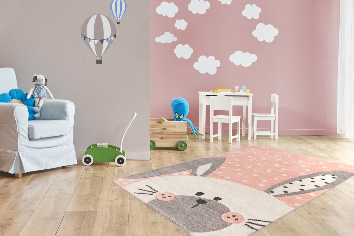 Dieser attraktive Kinderteppich ist für das Kinderzimmer von heute ideal geeignet. Das verspielte, kindgerechte Motiv und die dezenten Farben eignen sich ideal als Spieluntergrund und lassen Kinderaugen strahlen. Legen Sie den Teppich als weichen Spieluntergrund ins Kinderzimmer und genießen Sie nicht nur seine süße Optik, sondern auch die sichtbare Freude Ihrer Kinder. Ein großer Vorteil ist auch das pflegeleichte Material des Teppichs, das für eine robuste Qualität sorgt. Gerade im Kinderzimmer sind diese Eigenschaften für einen Teppich nicht wegzudenken, denn dadurch hält der Teppich hoher Beanspruchung und Verschmutzungen stand und Ihre Kinder werden lange Zeit Freude an Ihrem neuen Bodenbelag haben.