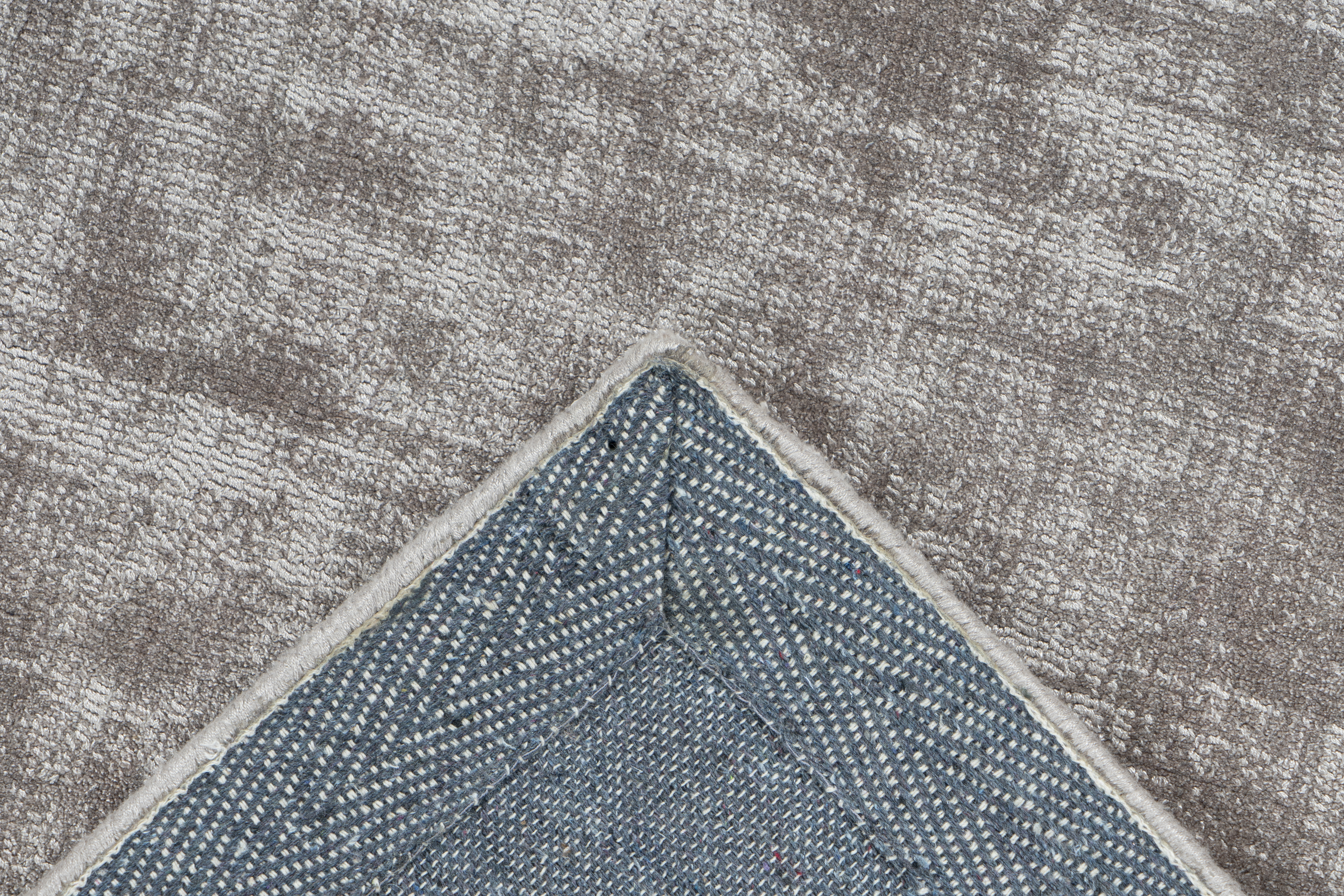 Handgemachter Vintage-Teppich im auffallend schönen "Shabby-Chic-Look", der durch geschorene Partien (Cut & Loop) entsteht. Das originelle Design mit trendiger Vintage-Färbung in Silber passt perfekt zu aktuellen Einrichtungstrends wie auch zu antiken Möbeln. Stilsicher schafft der Vintage-Teppich eine wohnlich warme Atmosphäre in jeder Räumlichkeit und wertet jedes Zimmer optisch auf. Ein schicker Blickfang, der in unterschiedlichen Größen und Farbvarianten erhältlich ist. In Indien handgewebt, gehört dieser Teppich zu den besonders weichen und strapazierfähigen Modellen, die einfach gereinigt werden können. Der flache Teppich aus hochwertiger Viskose schimmert wie Seide und zeigt sich in unterschiedlichen Blickwinkeln in neuer Gestalt. In vielen verschiedenen Größen erhältlich, passt er sich jeder Wohnsituation an. Er verleiht dem Wohnraum eine gemütliche Note und passt wunderbar zu verschiedenen Untergründen, wie Parkett- und Fliesenböden. Die optische Wirkung entsteht durch den speziellen Look mit Vintage-Charakter. Dank des seidigen Materials in hoher Qualität ist der in verschiedenen Größen erhältliche Webteppich pflegeleicht und strapazierfähig. Er weiß auch in häufiger frequentierten Bereichen, wie der Diele, zu überzeugen und sorgt für ein angenehm weiches Trittgefühl.