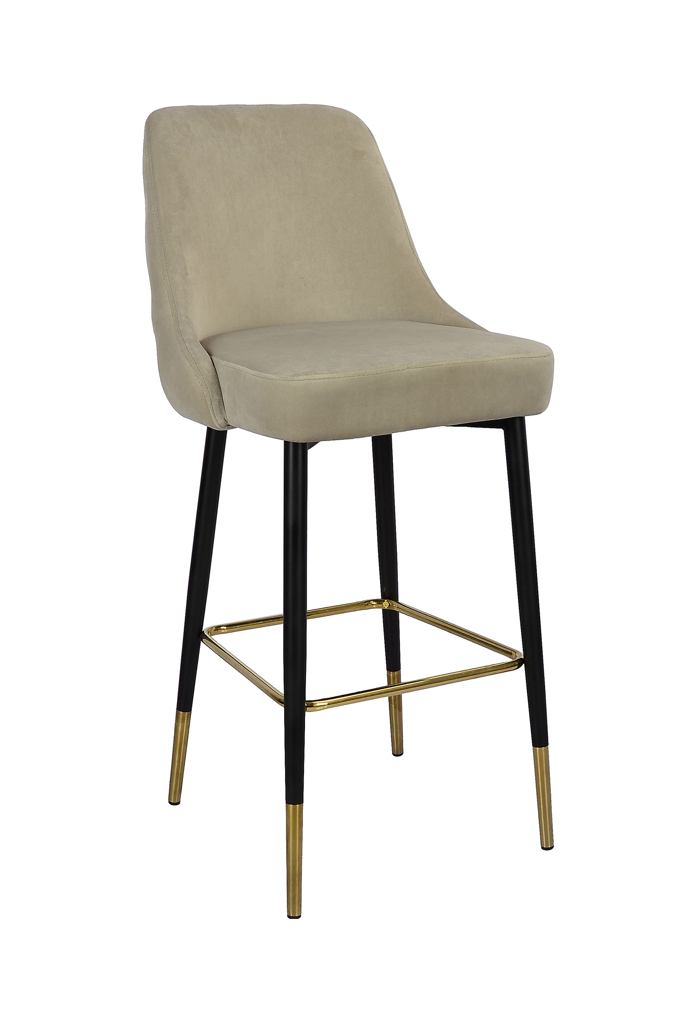 | Besonderheiten: | Eleganter Samt-Barstuhl mit Fußstütze, gesteppte Rückenlehne, 2-farbiges Gestell in modernem Design |