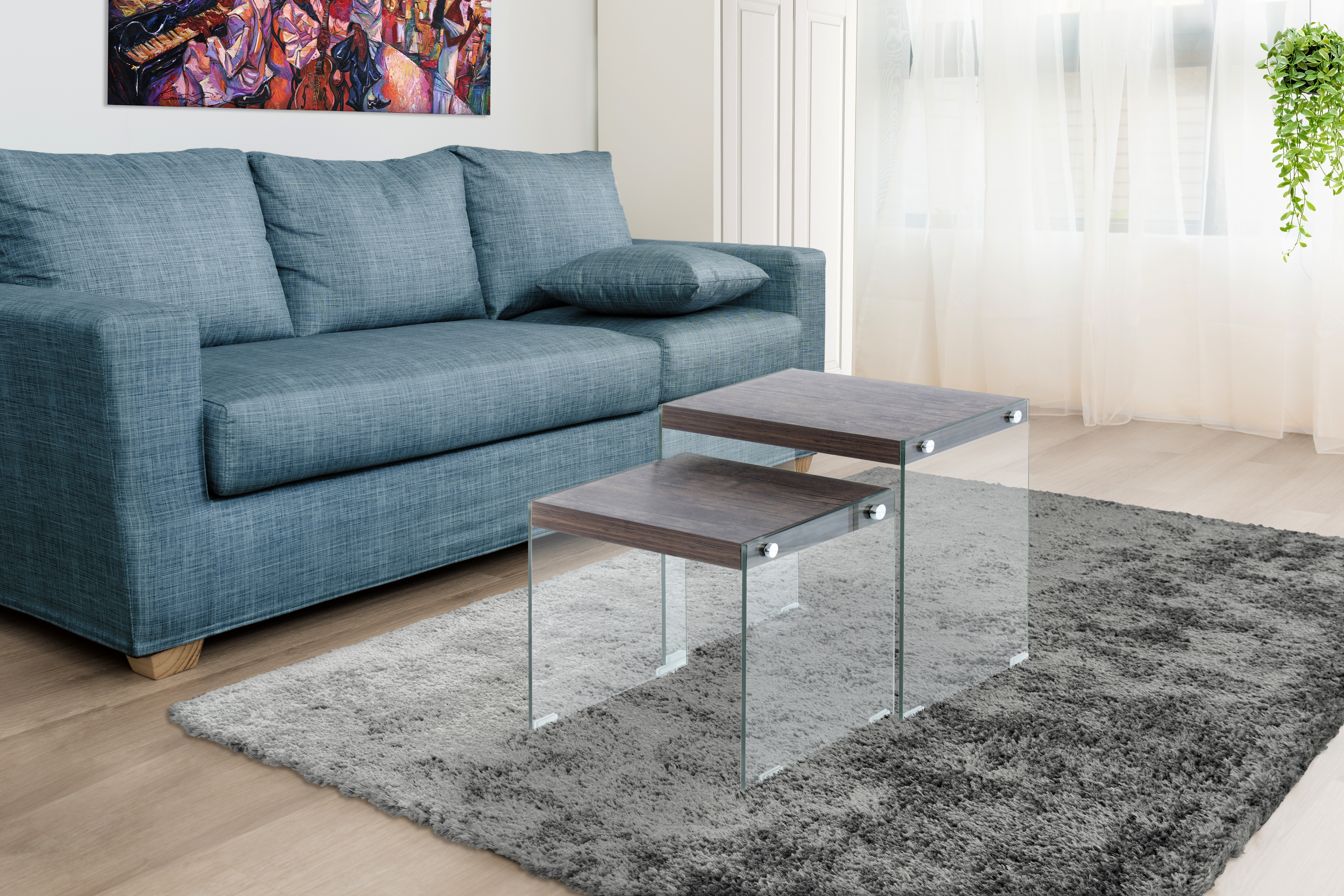 Das moderne Design dieses Beistelltisches zeichnet sich durch die transparenten Glas-Seitenwände und die unifarbenen Ablageflächen aus. Gleichzeitig ist das Design unaufdringlich und kann in verschiedene Einrichtungsstile integriert werden. Der Beistelltisch ist Bestandteil einer Möbelserie, sodass Sie durch die Kombination mit weiteren Möbelstücken ein einheitliches, harmonisches Gesamtambiente im Raum schaffen können. Auf dem Beistelltisch können ideal Dinge platziert werden, die Sie gerne griffbereit haben möchten. Egal ob als Beistelltisch im Wohnzimmer, als Nachtschränken im Schlafzimmer oder als Ablage im Flur – der Tisch ist vielseitig einsetzbar und ein praktisches und zugleich dekoratives Möbelstück. Richten Sie sich mit Möbeln dieser Möbelserie in Ihrem Zuhause stilvoll ein und kombinieren Sie beispielsweise Beistelltisch und Regal miteinander. Die Tische können in ihrer tatsächlichen Farbgebung von den Bildern abweichen.