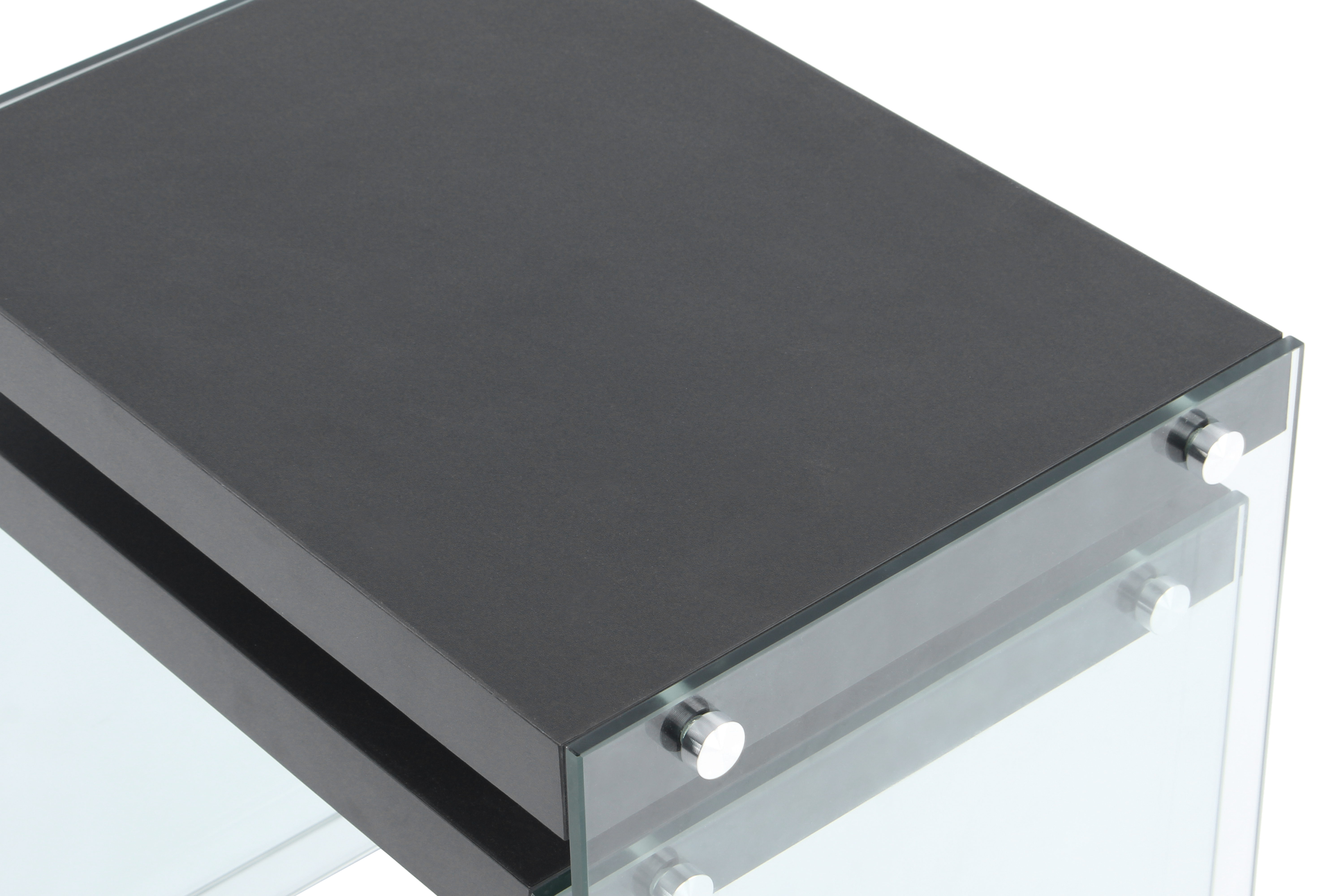 Das moderne Design dieses Beistelltisches zeichnet sich durch die transparenten Glas-Seitenwände und die unifarbenen Ablageflächen aus. Gleichzeitig ist das Design unaufdringlich und kann in verschiedene Einrichtungsstile integriert werden. Der Beistelltisch ist Bestandteil einer Möbelserie, sodass Sie durch die Kombination mit weiteren Möbelstücken ein einheitliches, harmonisches Gesamtambiente im Raum schaffen können. Auf dem Beistelltisch können ideal Dinge platziert werden, die Sie gerne griffbereit haben möchten. Egal ob als Beistelltisch im Wohnzimmer, als Nachtschränken im Schlafzimmer oder als Ablage im Flur – der Tisch ist vielseitig einsetzbar und ein praktisches und zugleich dekoratives Möbelstück. Richten Sie sich mit Möbeln dieser Möbelserie in Ihrem Zuhause stilvoll ein und kombinieren Sie beispielsweise Beistelltisch und Regal miteinander. Die Tische können in ihrer tatsächlichen Farbgebung von den Bildern abweichen.