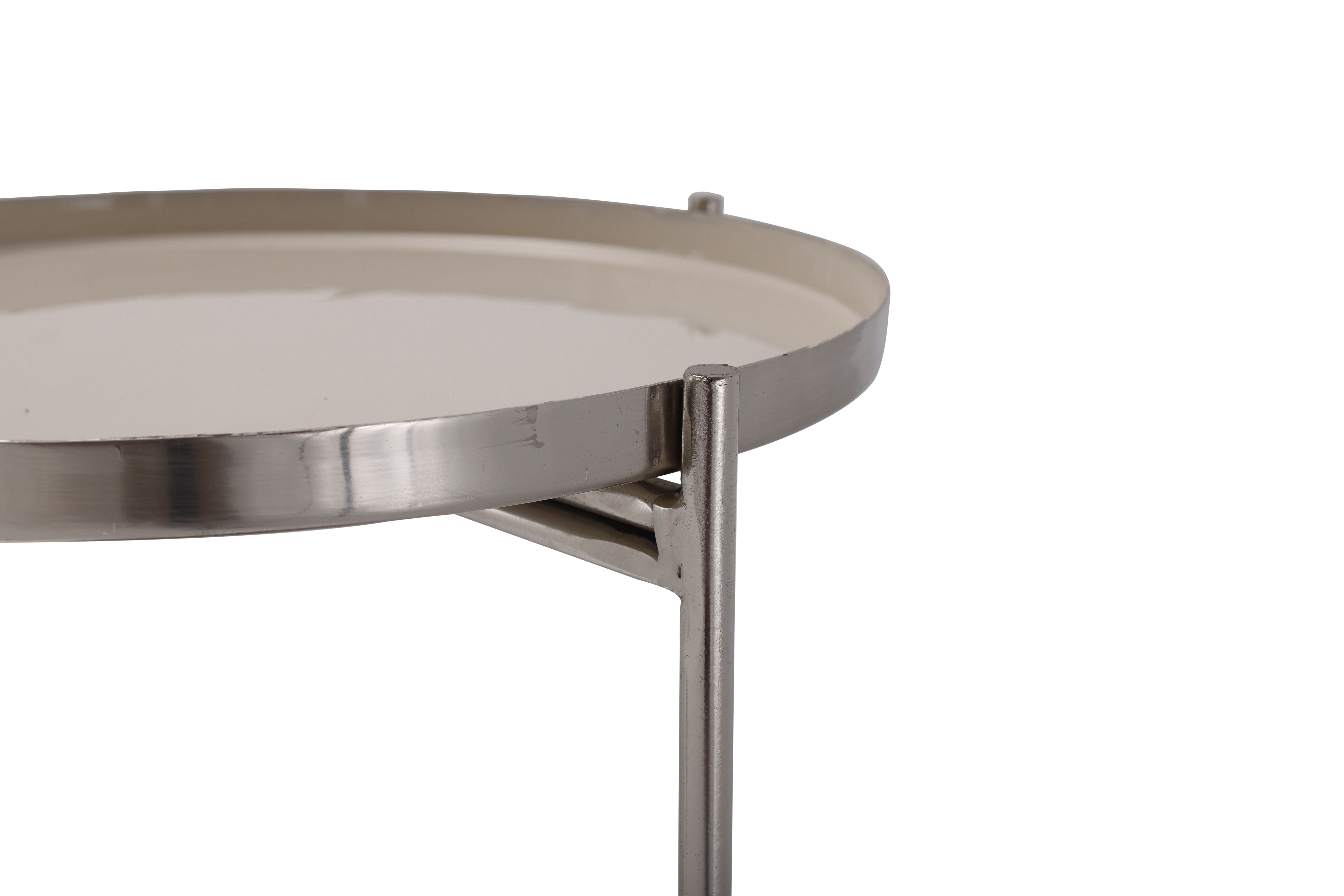 Der Beistelltisch stammt aus Handmanufaktur und besteht aus Metall. Erhältlich in verschiedenen Varianten, ist es ein leichtes den passenden Tisch für die eigene Innengestaltung zu finden. Dank seines zeitlosen Designs sorgt er für gemütliches Ambiente.