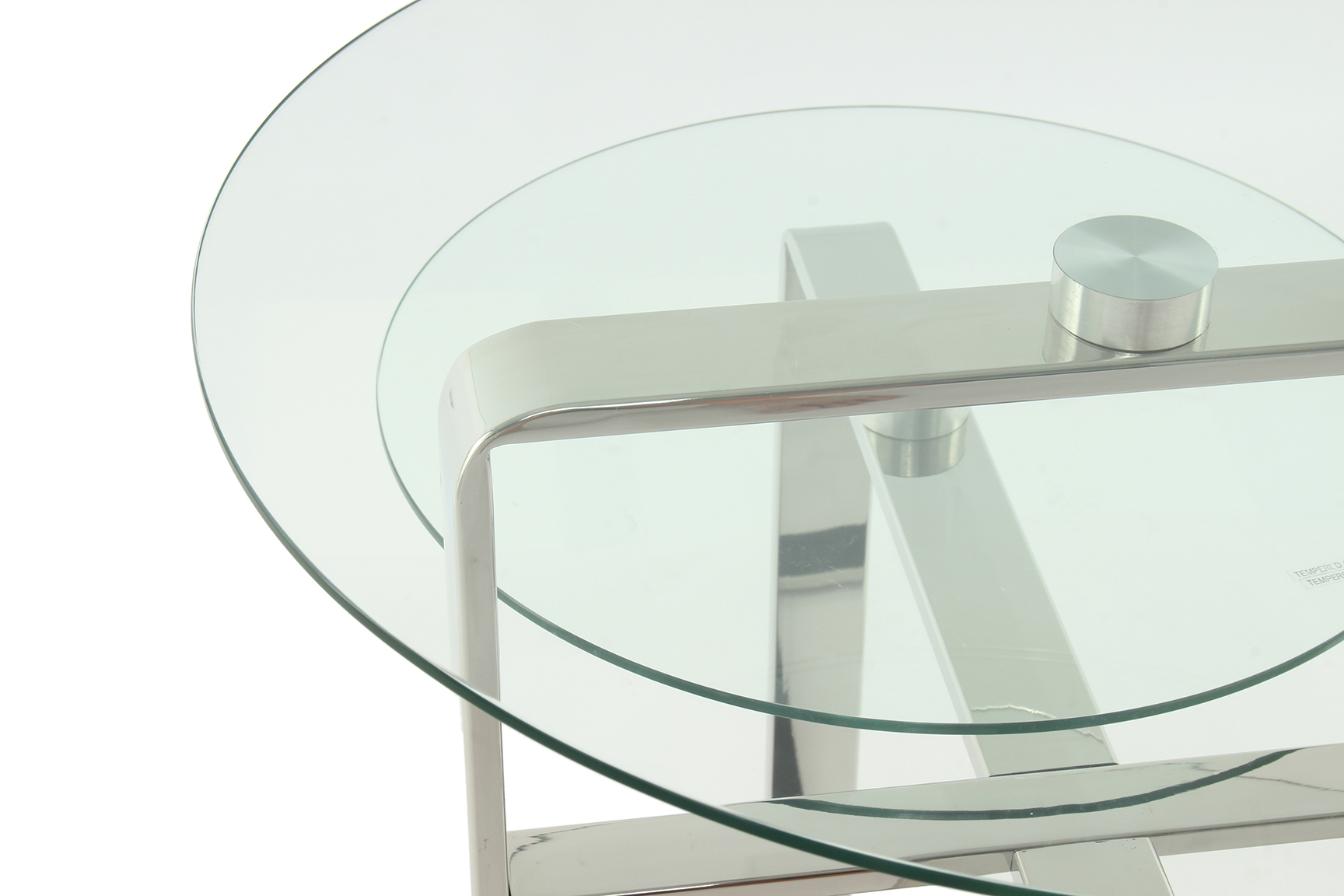 er ausgezeichnete Staumöglichkeiten und besticht dabei mit klassischer Anmut. Die durchsichtigen Tischplatten vermitteln klare Linien und