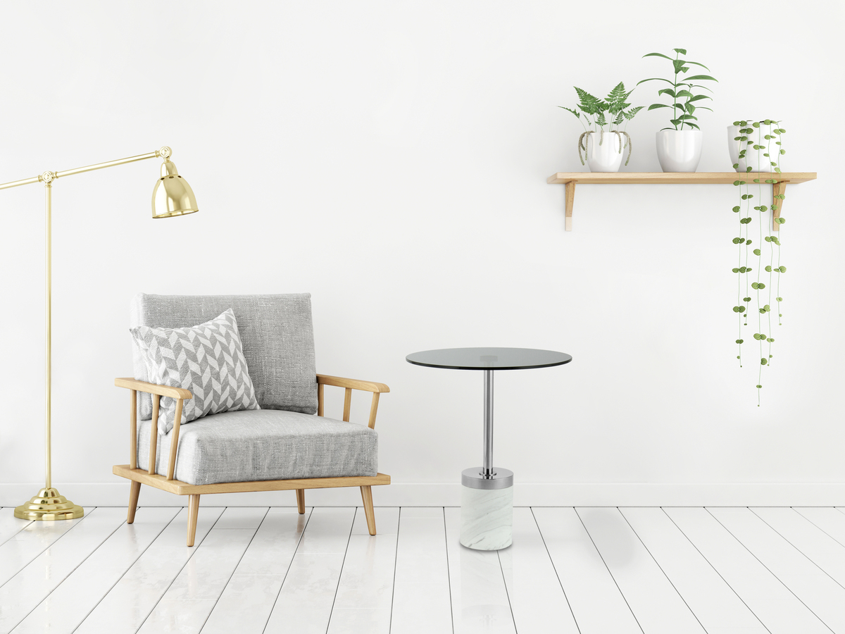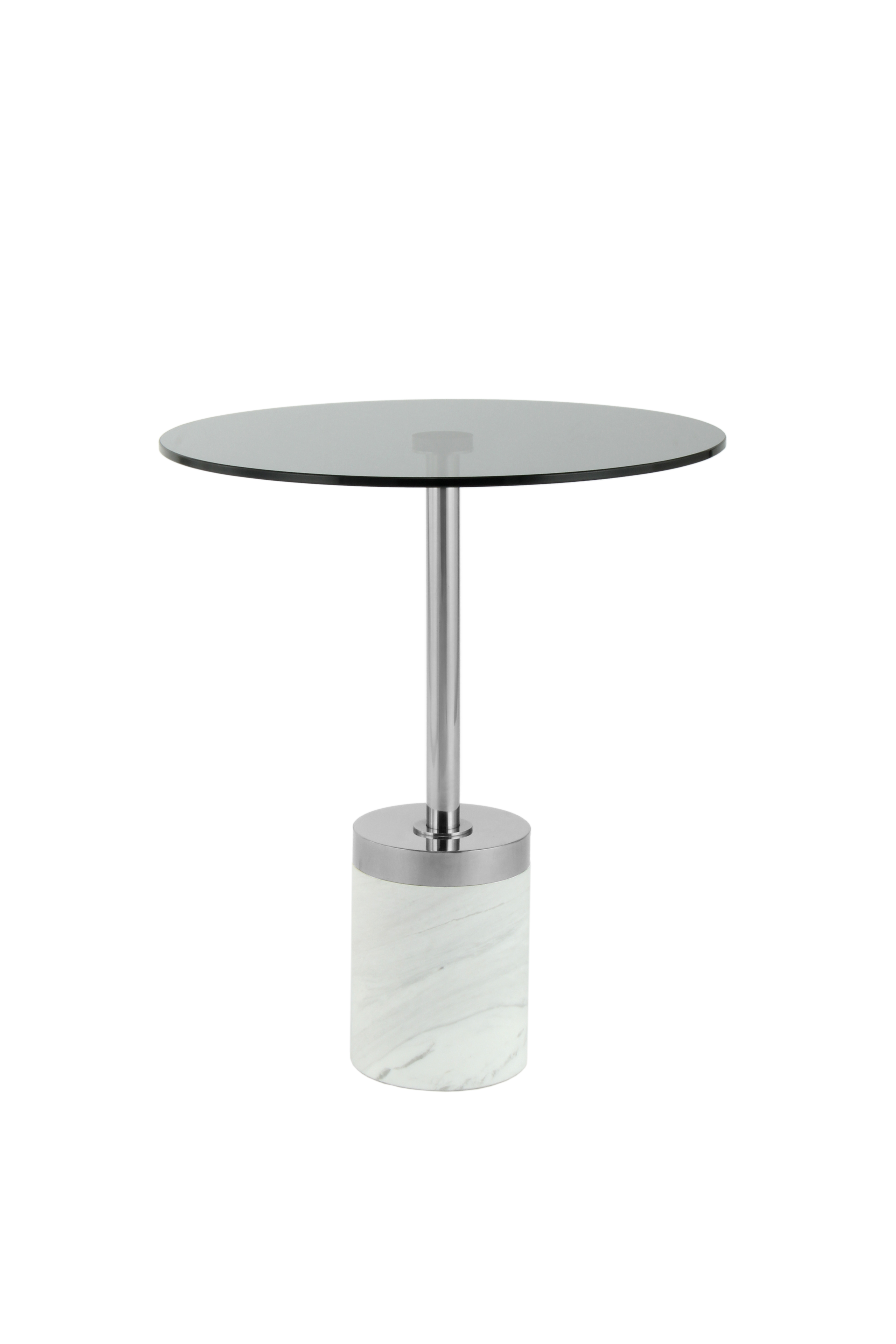 Mit seiner runden Glasplatte und seinem modernen Mamor Sockel, schenkt er jedem Wohnraum ein zeitloses und klassisches Wohnambiente.