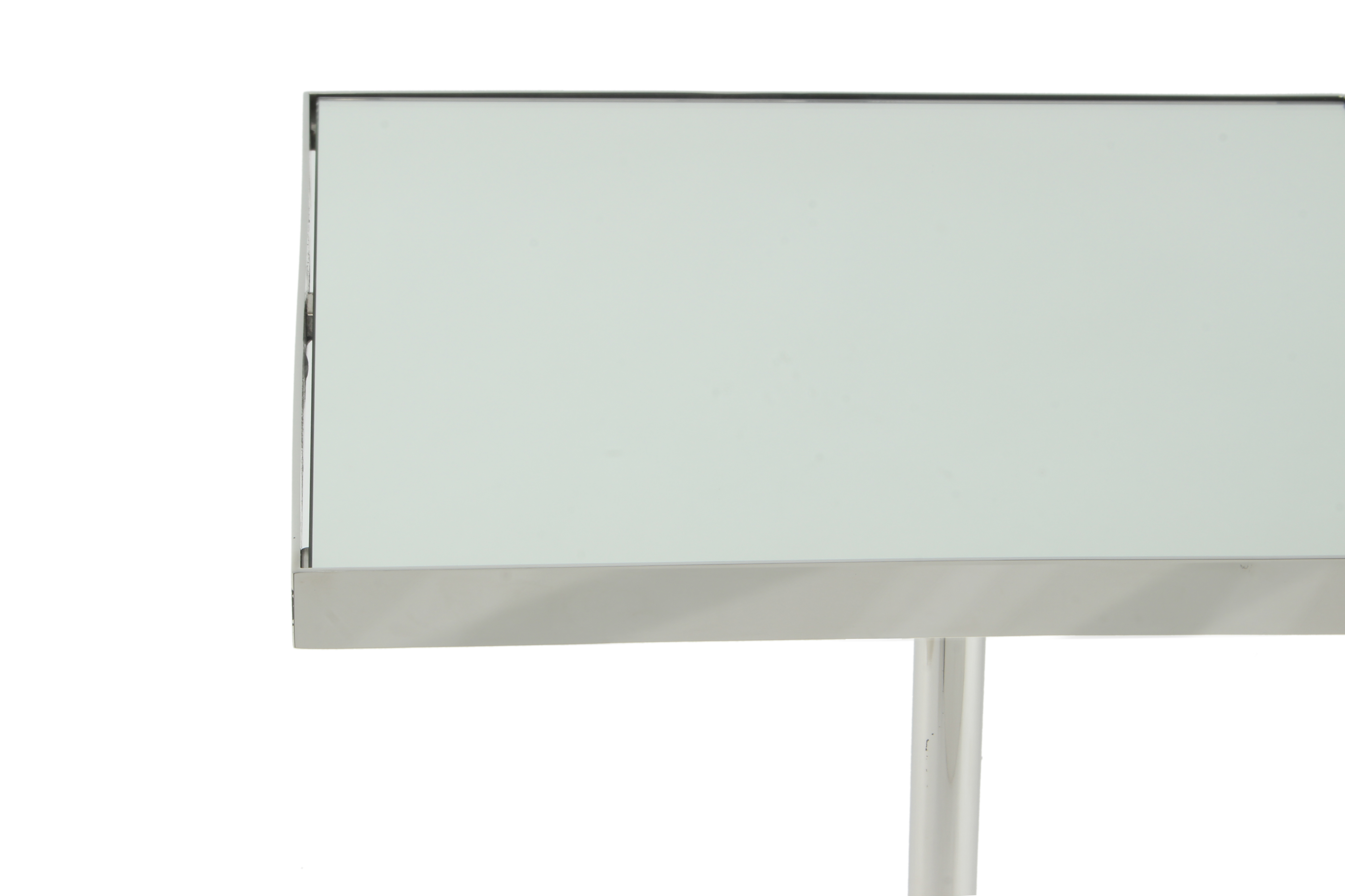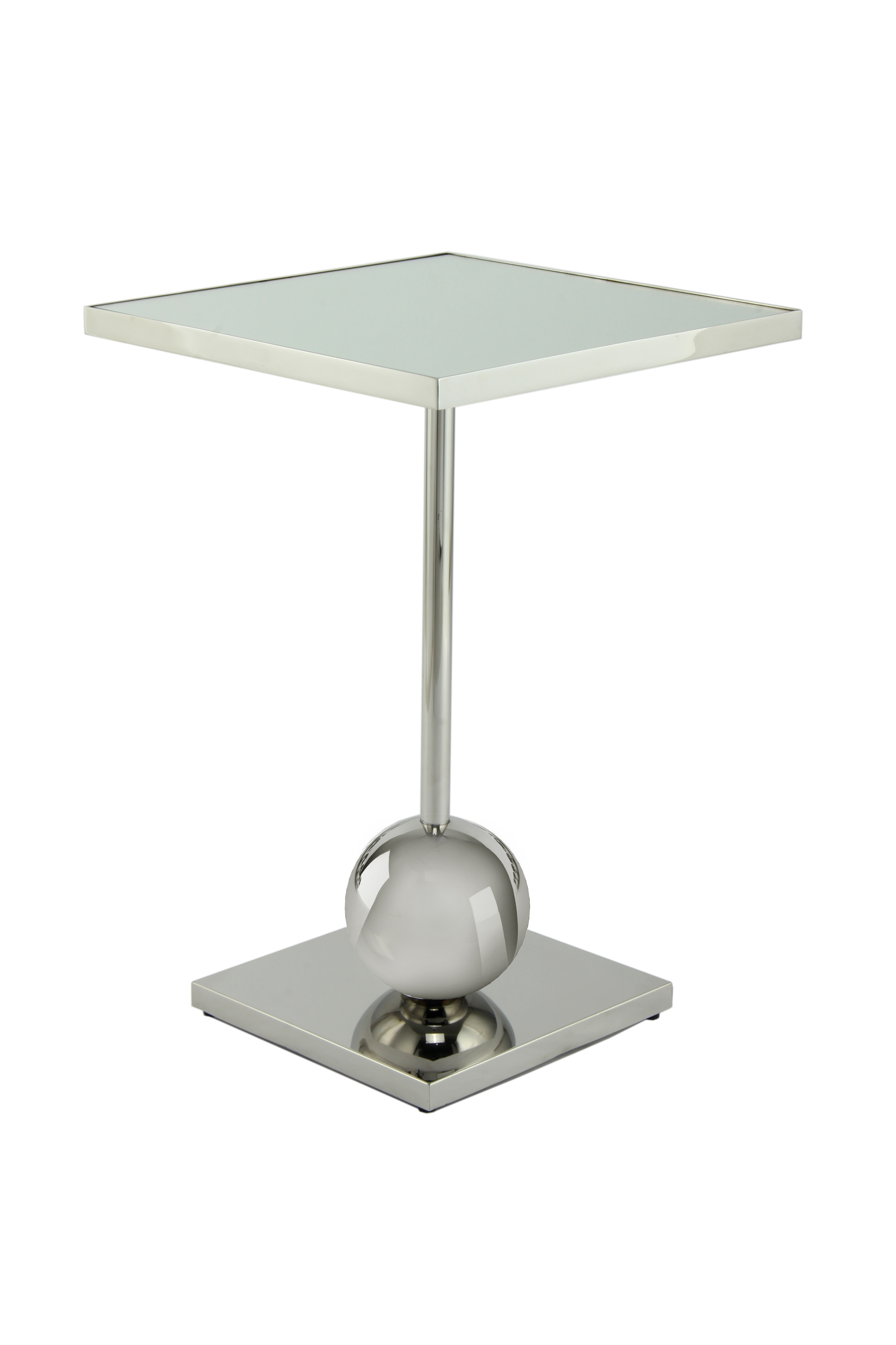 Der Beistelltisch mit Spiegelglasplatte auf stabilen Edelstahlgestell macht ihn sowohl Outdoor als auch Indoor zu einem modernen und praktischen, kleinen Ablagetisch.