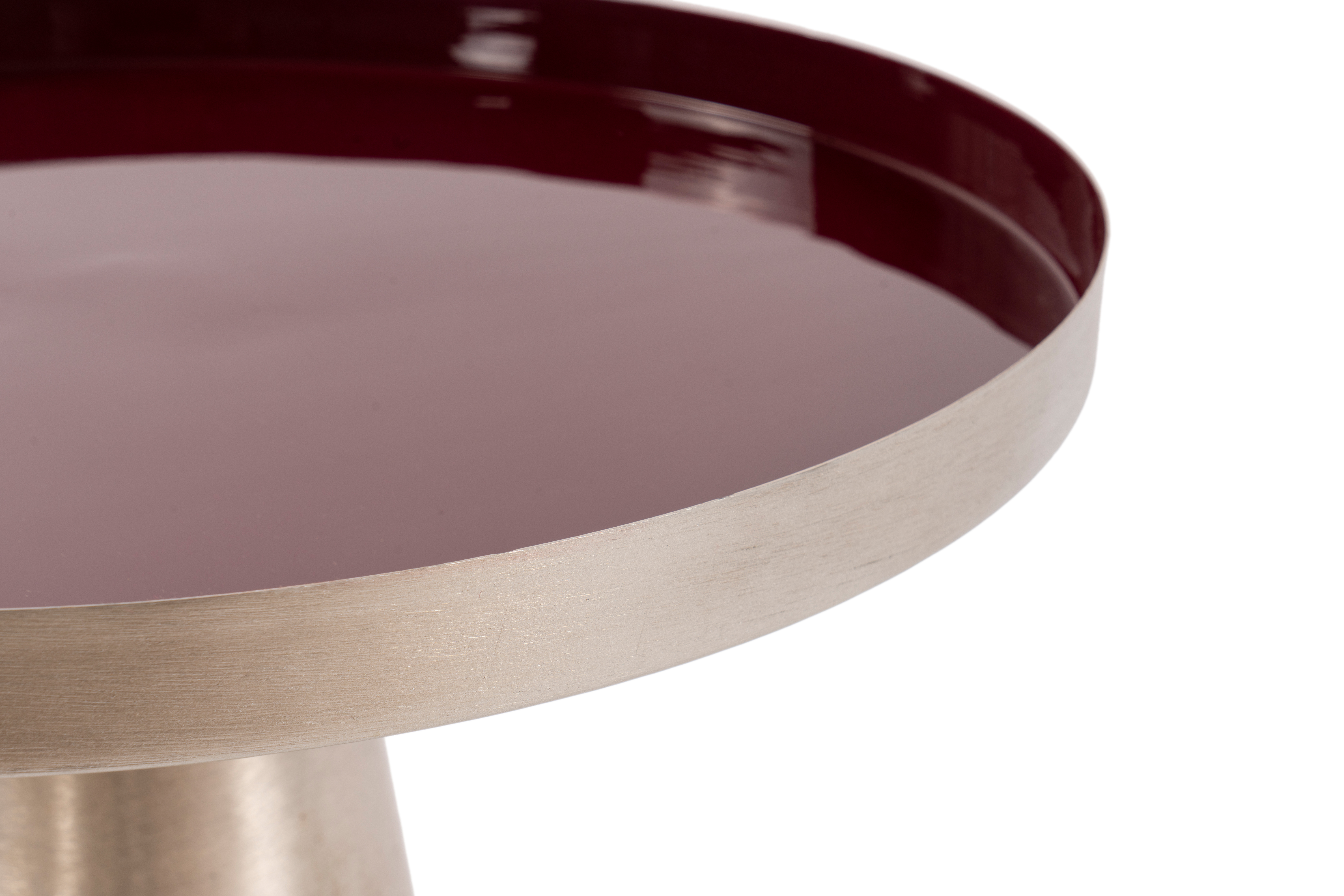 Dieser Beistelltisch aus Metall überzeugt nicht nur durch seine moderne runde Form, sondern auch durch die Kombination aus dem eleganten Gestell und der eingefärbten Tischplatte. Mit dem attraktiven Retro-Stil werten sie Ihre Einrichtung auf und bringen einen glamourösen Stil in Ihr Zuhause. Der hohe Rand der Tischplatte verfügt über integrierte Tragegriffe, wodurch der Tisch problemlos umplatziert werden kann. Gleichzeitig verhindert der Rand, dass Gegenstände vom Tisch herunterfallen. Die glatte Oberfläche des Tisches ermöglicht ein einfaches Abwischen. Egal ob als praktische Abstellfläche im Flur oder als Beistelltisch im Wohnzimmer – dieses Möbelstück im Retro-Stil kann sich in jedem Wohnraum sehen lassen. Der Tisch kann in seiner tatsächlichen Farbgebung von den Bildern abweichen.