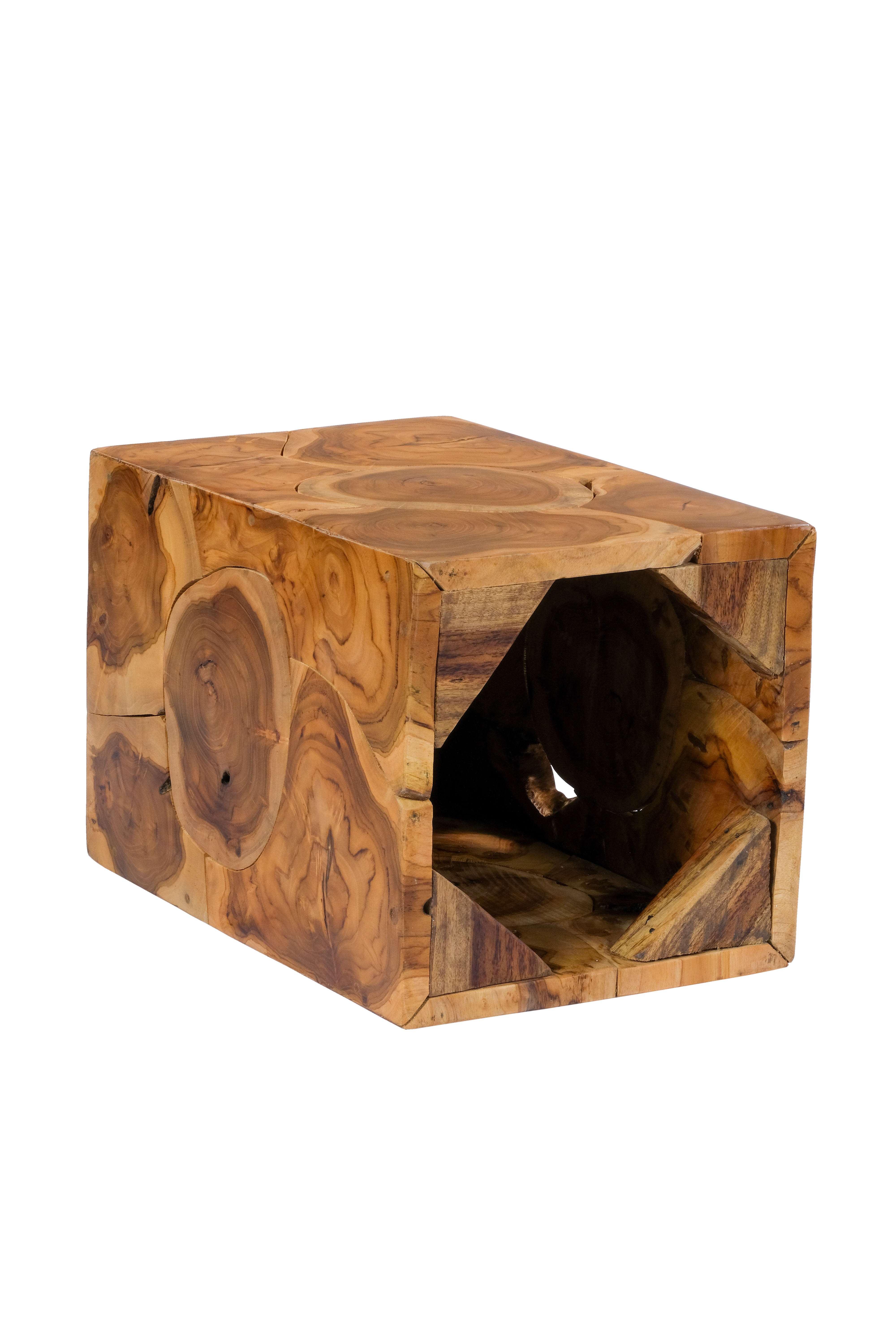 Dieser Beistelltisch ist das ideale Möbelstück in jeder modernen Wohnung. Als Ablagefläche im Flur oder als Beistelltisch im Wohnzimmer ist dieser Tisch sowohl praktisch als auch enorm dekorativ. Die Verwendung von Teakholz zeugt von hoher Qualität und Beständigkeit. Der Tisch wurde zudem in äußerst stabiler Bauweise errichtet. Das Kubus-Design macht dieses Möbelstück einfach unverkennbar. Damit wird der Tisch automatisch zum Hingucker in Ihrem Zuhause. Mit diesem Beistelltisch werten Sie jeden Wohnraum auf. Das Material ist pflegeleicht und bringt einen gewissen Hauch von Luxus in Ihren Wohnraum. Mit diesem Beistelltisch erhalten Sie ein individuelles Naturprodukt. Es kann in Form und Abmessungen zu Abweichung kommen, sodass es Ihren neuen Tisch kein zweites Mal in gleicher Form gibt. Der Tisch kann in seiner tatsächlichen Farbgebung von den Bildern abweichen. Eine regelmäßige Reinigung mit einem feuchten Tuch wird empfohlen.