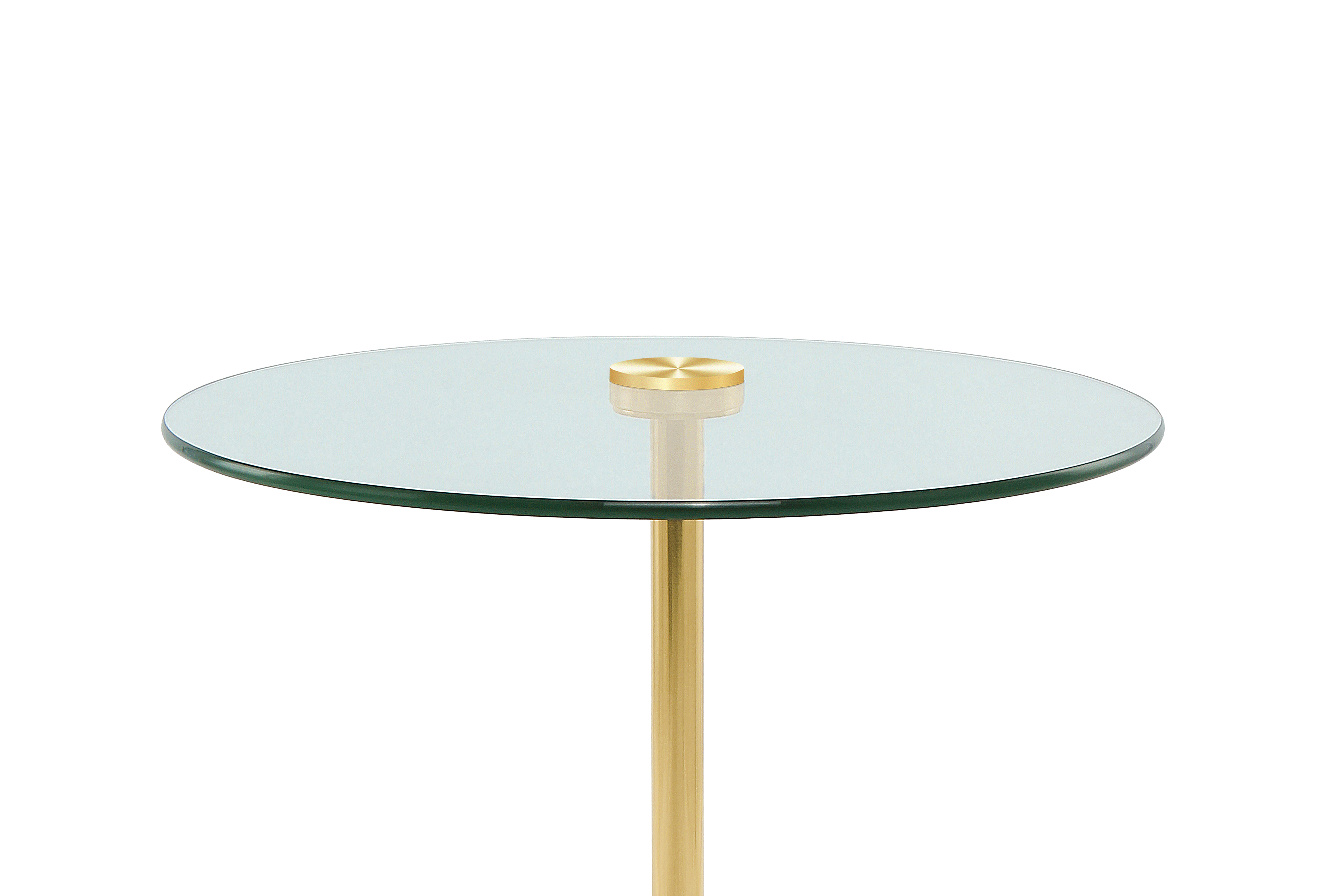 Dieser Tisch schafft mit seiner zeitgemäßen Optik und der eleganten Farbgebung ein luxuriöses Ambiente mit wohnlicher Atmosphäre. Das runde, elegante Metallgestell und die ebenfalls runde Glas-Tischplatte fügen sich zu einer stilvollen Einheit zusammen, die sich in jede Einrichtung integrieren lässt, um die bestehende Einrichtung aufzuwerten und eine glamouröse Atmosphäre zu kreieren. Dank der einfach abwischbaren Oberflächen kann der Tisch problemlos in jedem Wohnraum eingesetzt werden. In Kombination mit weiteren Möbelstücken und einem gemütlichen Teppich schaffen Sie ein attraktives Raumklima. Der Tisch kann in seiner tatsächlichen Farbgebung von den Bildern abweichen.