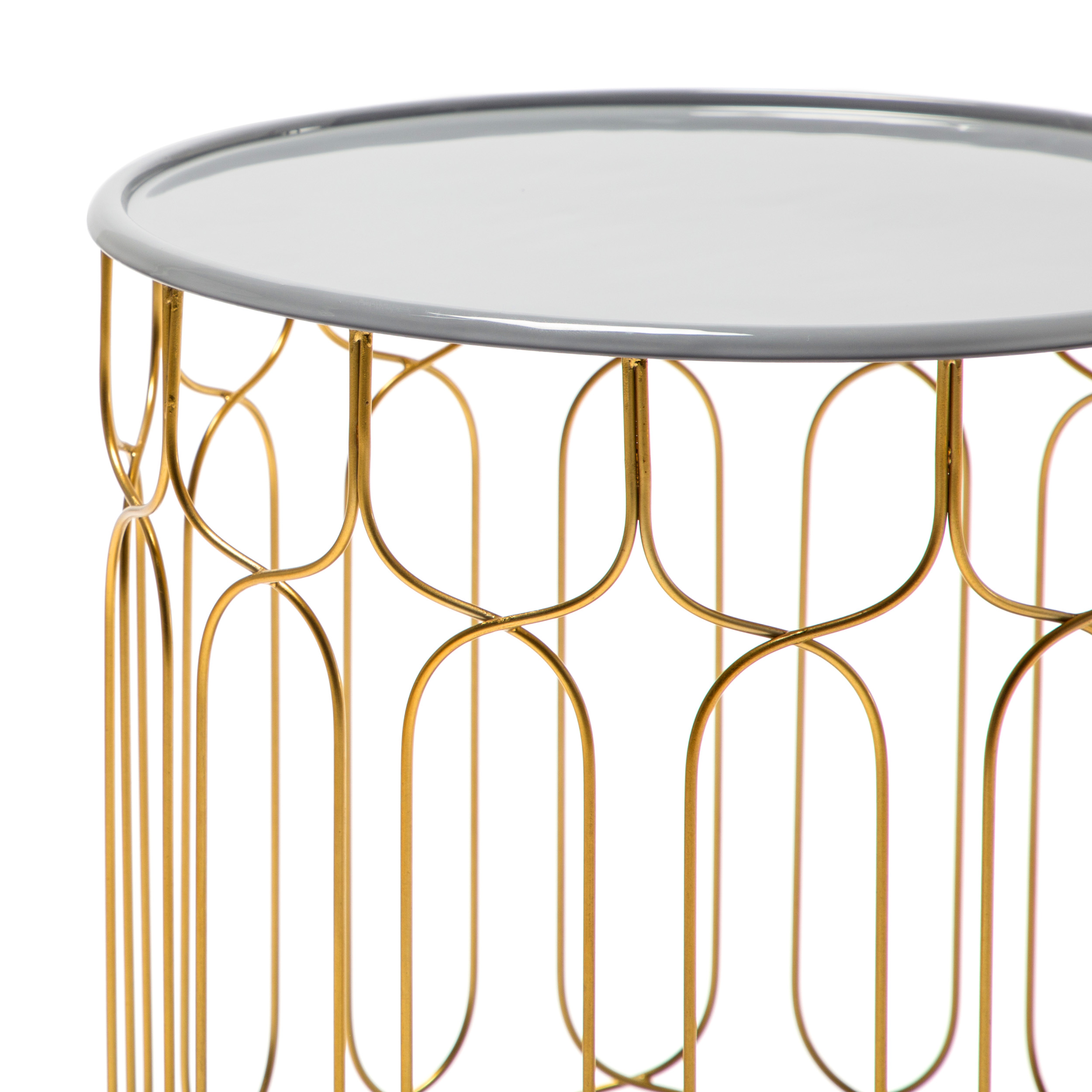 Die offene Gestaltung dieses Beistelltisches bringt ein modernes und einladendes Ambiente mit sich. Das Metallgestell aus verschiedenen zusammengesetzten Elementen verleiht dem Tisch seinen besonderen Look. Kombiniert mit der Tischplatte aus Glas ergibt sich ein harmonisches Gesamtbild mit edlem Charakter. Besonders in luxuriösen Einrichtungen macht der Tisch eine gute Figur. Aber auch in modernen und klassischen Einrichtungen sorgt er für das gewisse Etwas. Durch die runde Grundform und die ebenfalls runde Tischplatte wirkt der Tisch sehr ansprechend. Die randlose, glatte Oberfläche ermöglicht ein einfaches Abwischen des Möbelstücks. Egal ob als praktischen Beistelltisch und Ablagefläche oder als Stellmöglichkeit für stilvolle Dekoration – dieser Tisch kann sich in jeder Hinsicht sehen lassen. Der Tisch kann in seiner tatsächlichen Farbgebung von den Bildern abweichen.