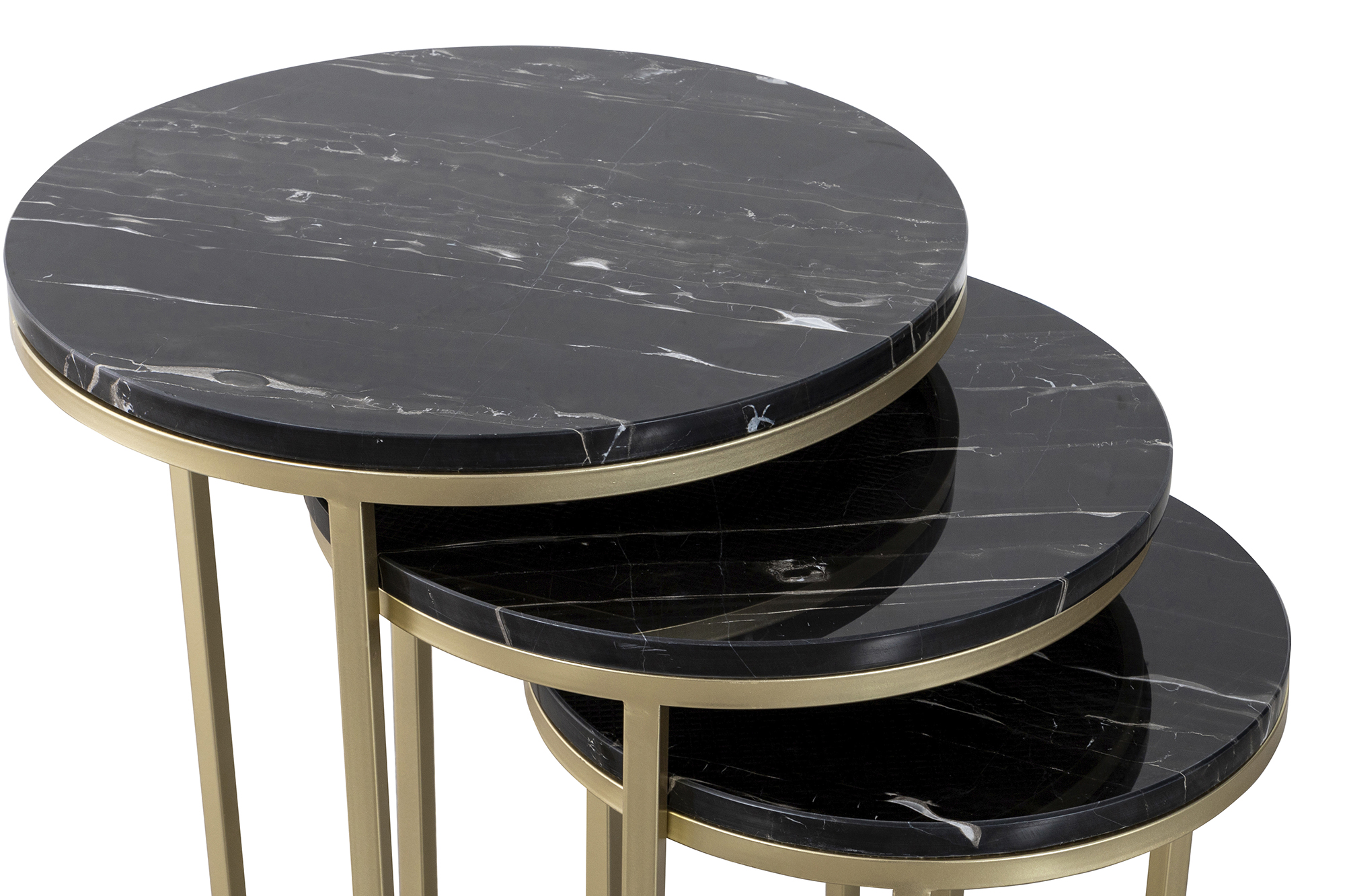 Die Tische bestehen aus ausgewählten Materialien und wurden in Handfertigung hergestellt. Der Mix aus Marmor und Eisen setzt auf ein edles Finish und vergoldeten Rahmen. Das so entstehende Design ist wunderschön anzusehen und geht leicht mit weiteren modernen Einrichtungsgegenständen einher. Darüber hinaus sind die Oberflächen leicht zu reinigen.