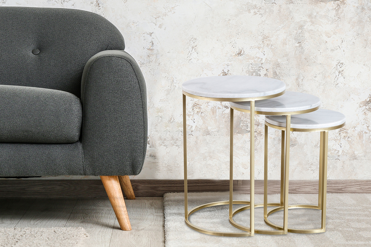 Die Tische bestehen aus ausgewählten Materialien und wurden in Handfertigung hergestellt. Der Mix aus Marmor und Eisen setzt auf ein edles Finish und vergoldeten Rahmen. Das so entstehende Design ist wunderschön anzusehen und geht leicht mit weiteren modernen Einrichtungsgegenständen einher. Darüber hinaus sind die Oberflächen leicht zu reinigen.
