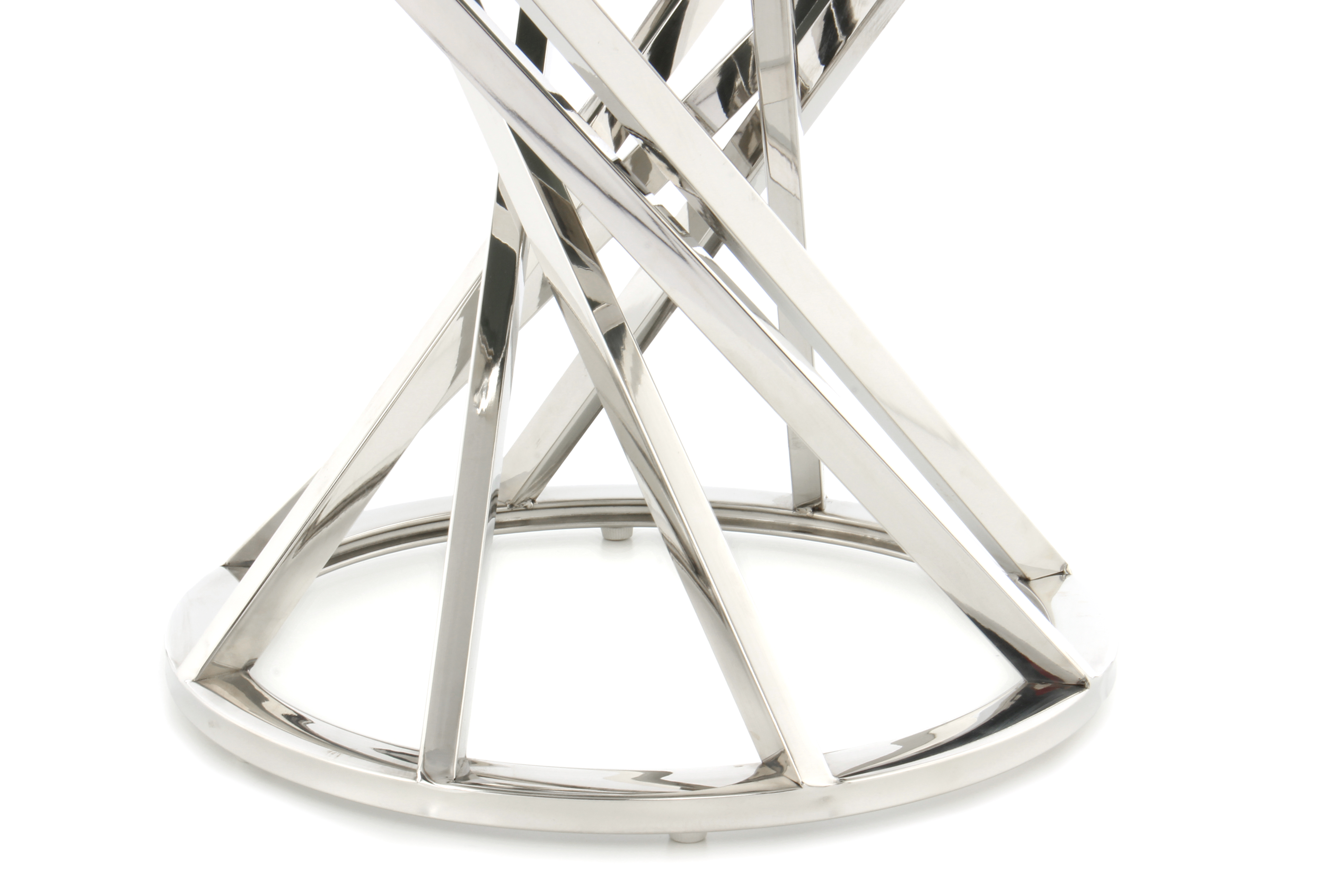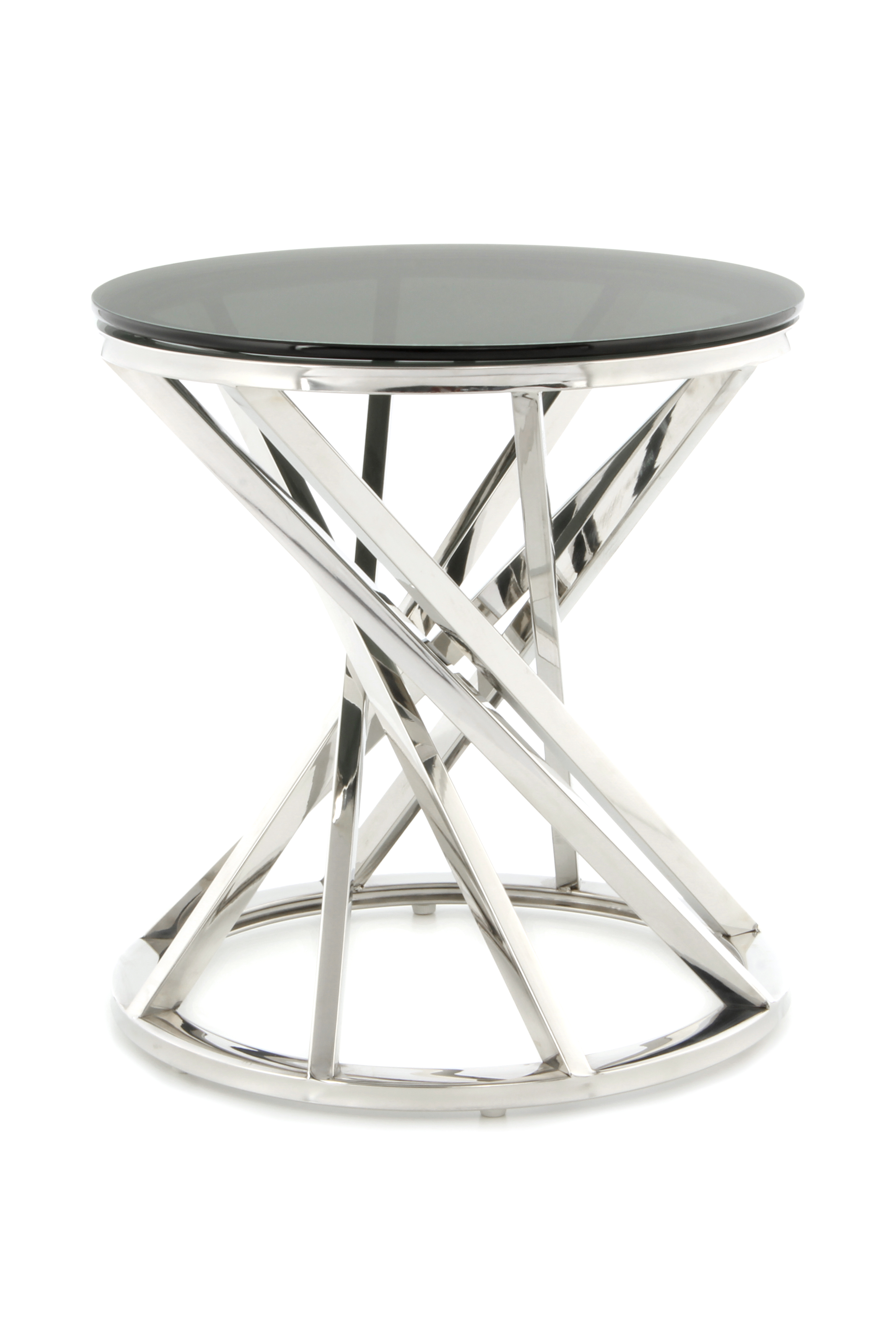 Die offene Gestaltung dieses Beistelltisches bringt ein modernes und einladendes Ambiente mit sich. Das Metallgestell ist in sich gedreht und verleiht dem Tisch seinen besonderen Look. Kombiniert mit der Tischplatte aus Glas ergibt sich ein attraktives Gesamtbild mit edlem Charakter. Besonders in luxuriösen Einrichtungen macht der Tisch eine gute Figur. Aber auch in klassischen und modernen Einrichtungen sorgt er für das gewisse Etwas. Durch die runde Grundform und die ebenfalls runde Tischplatte wirkt der Tisch sehr harmonisch. Die randlose Gestaltung der Tischplatte und die glatte Oberfläche ermöglichen ein einfaches Abwischen. Der Tisch kann in seiner tatsächlichen Farbgebung von den Bildern abweichen.