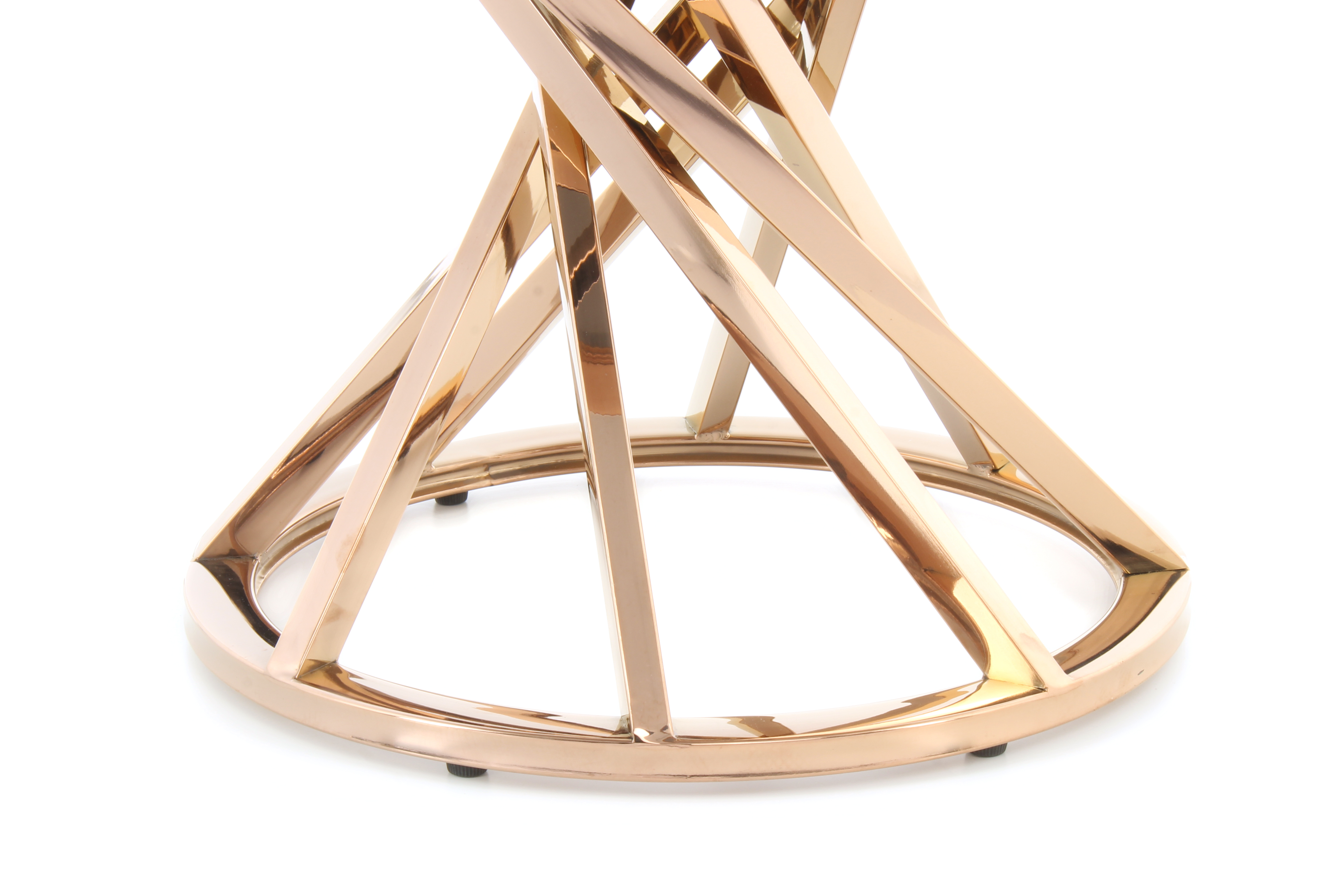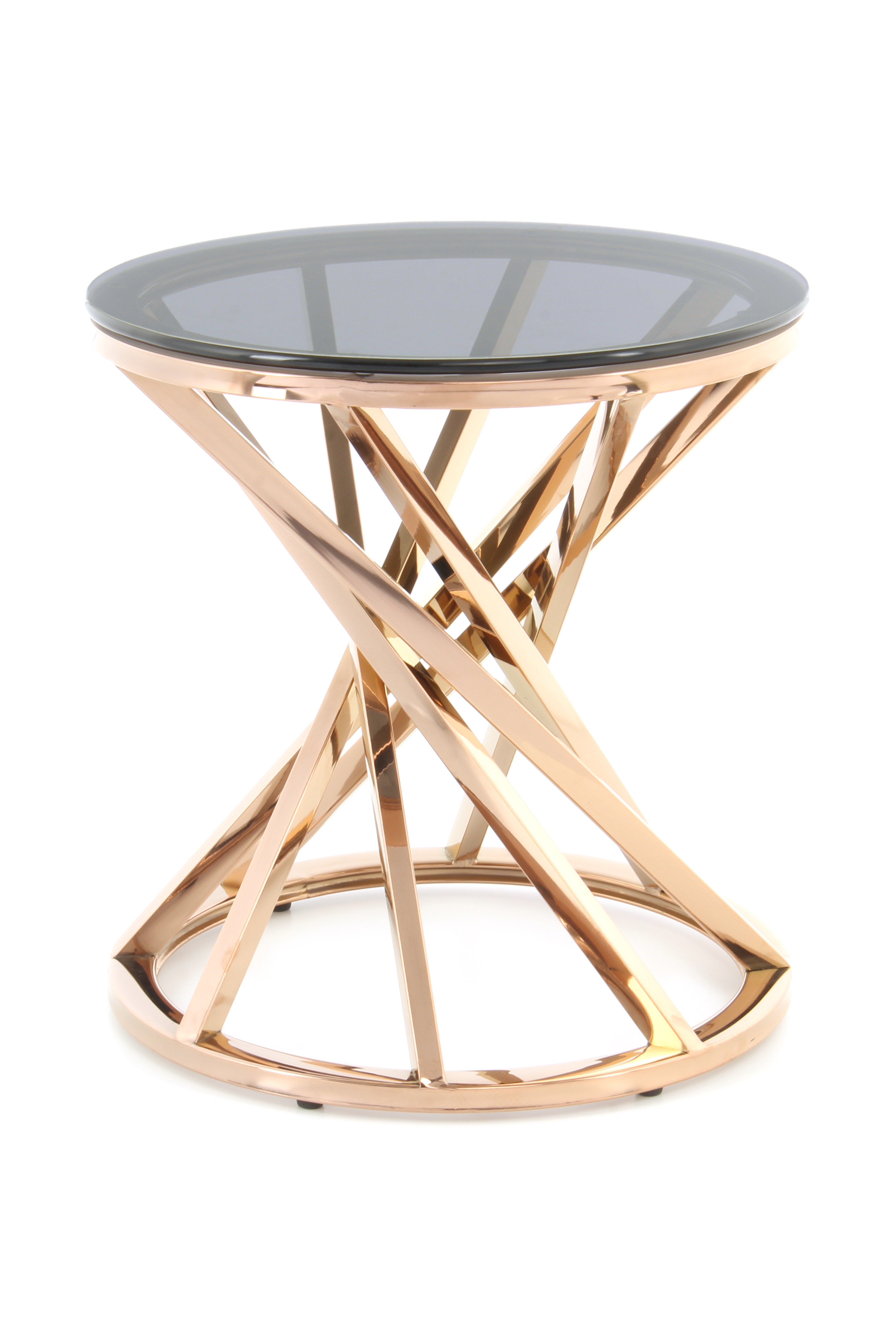 Die offene Gestaltung dieses Beistelltisches bringt ein modernes und einladendes Ambiente mit sich. Das Metallgestell ist in sich gedreht und verleiht dem Tisch seinen besonderen Look. Kombiniert mit der Tischplatte aus Glas ergibt sich ein attraktives Gesamtbild mit edlem Charakter. Besonders in luxuriösen Einrichtungen macht der Tisch eine gute Figur. Aber auch in klassischen und modernen Einrichtungen sorgt er für das gewisse Etwas. Durch die runde Grundform und die ebenfalls runde Tischplatte wirkt der Tisch sehr harmonisch. Die randlose Gestaltung der Tischplatte und die glatte Oberfläche ermöglichen ein einfaches Abwischen. Der Tisch kann in seiner tatsächlichen Farbgebung von den Bildern abweichen.