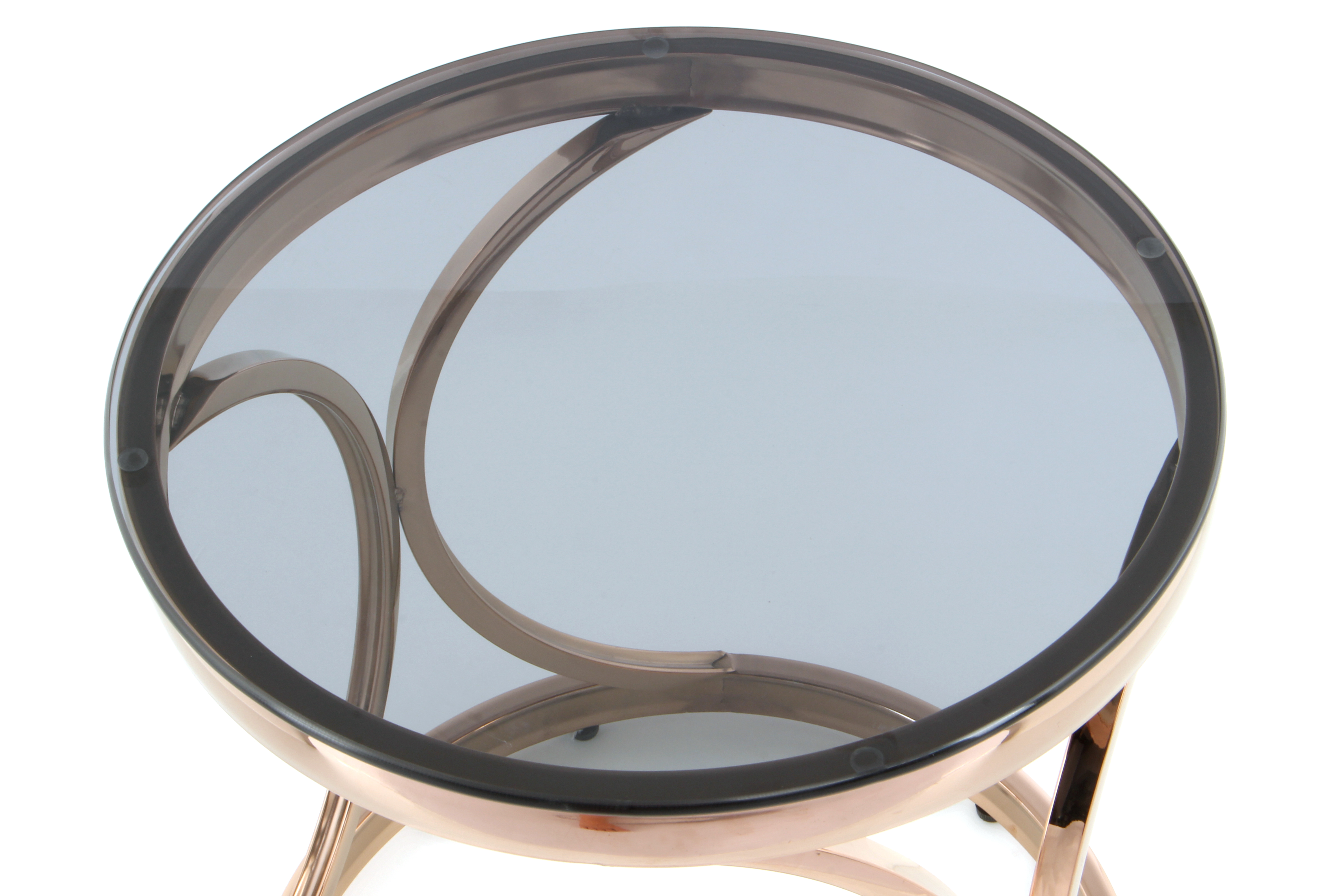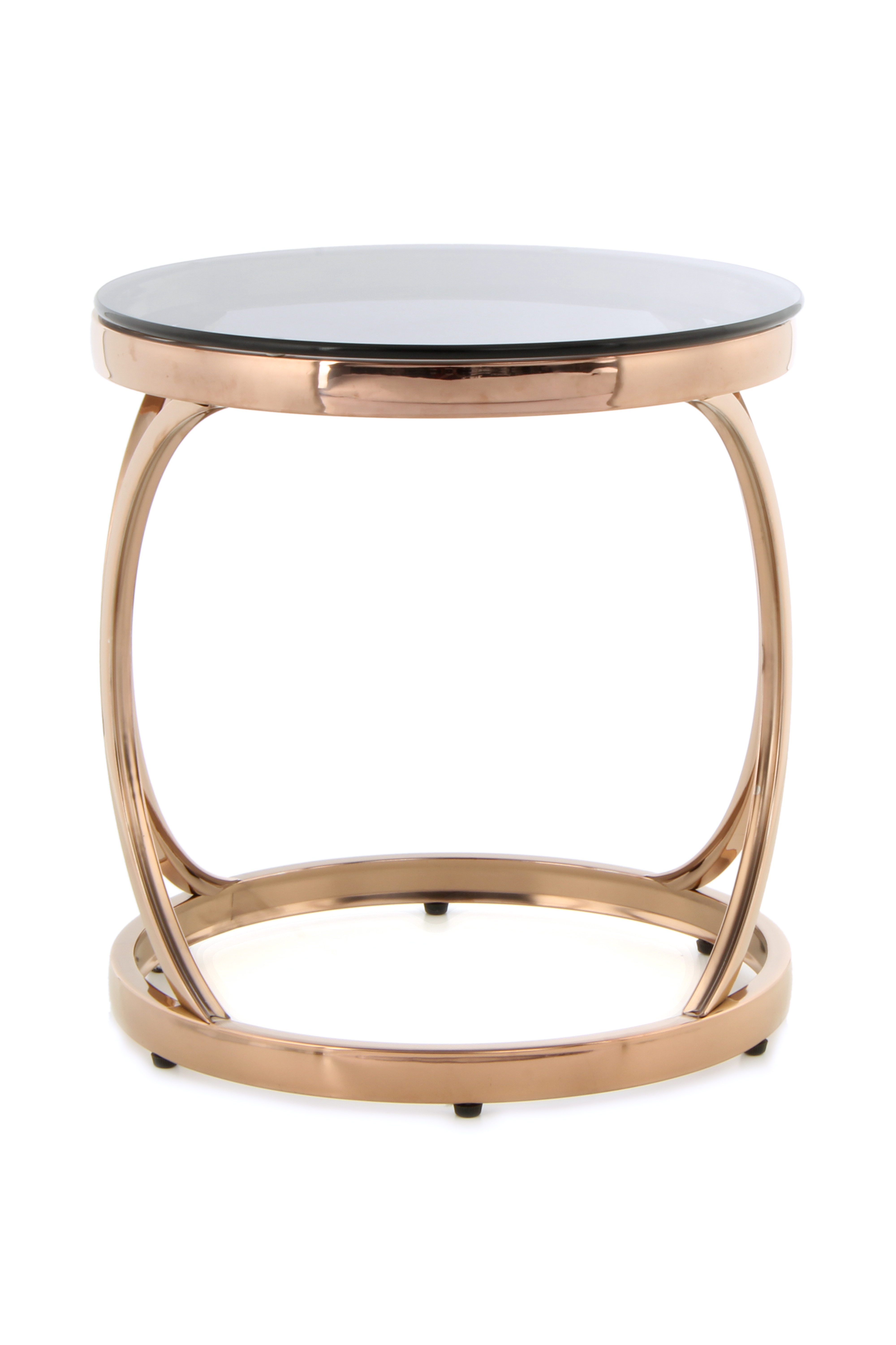 Die Kombination aus dem stilvoll gefärbten Metallgestell und der transparenten Tischplatte gibt diesem Beistelltisch sein elegantes Design. Das abgerundete, sternförmig ausgerichtete Metallgestell überzeugt durch die edle Aufmachung und bringt Eleganz und Glamour in die Umgebung. Die Tischplatte aus Glas fügt sich optisch gut in das Gesamtbild ein bietet gleichzeitig Platz für passende Dekoration oder zum Ablegen von gerade nicht Benötigtem. Mit modernen Einrichtungen sowie Luxus-Einrichtungen oder dem orientalischen Stil lässt sich der Beistelltisch besonders gut kombinieren.