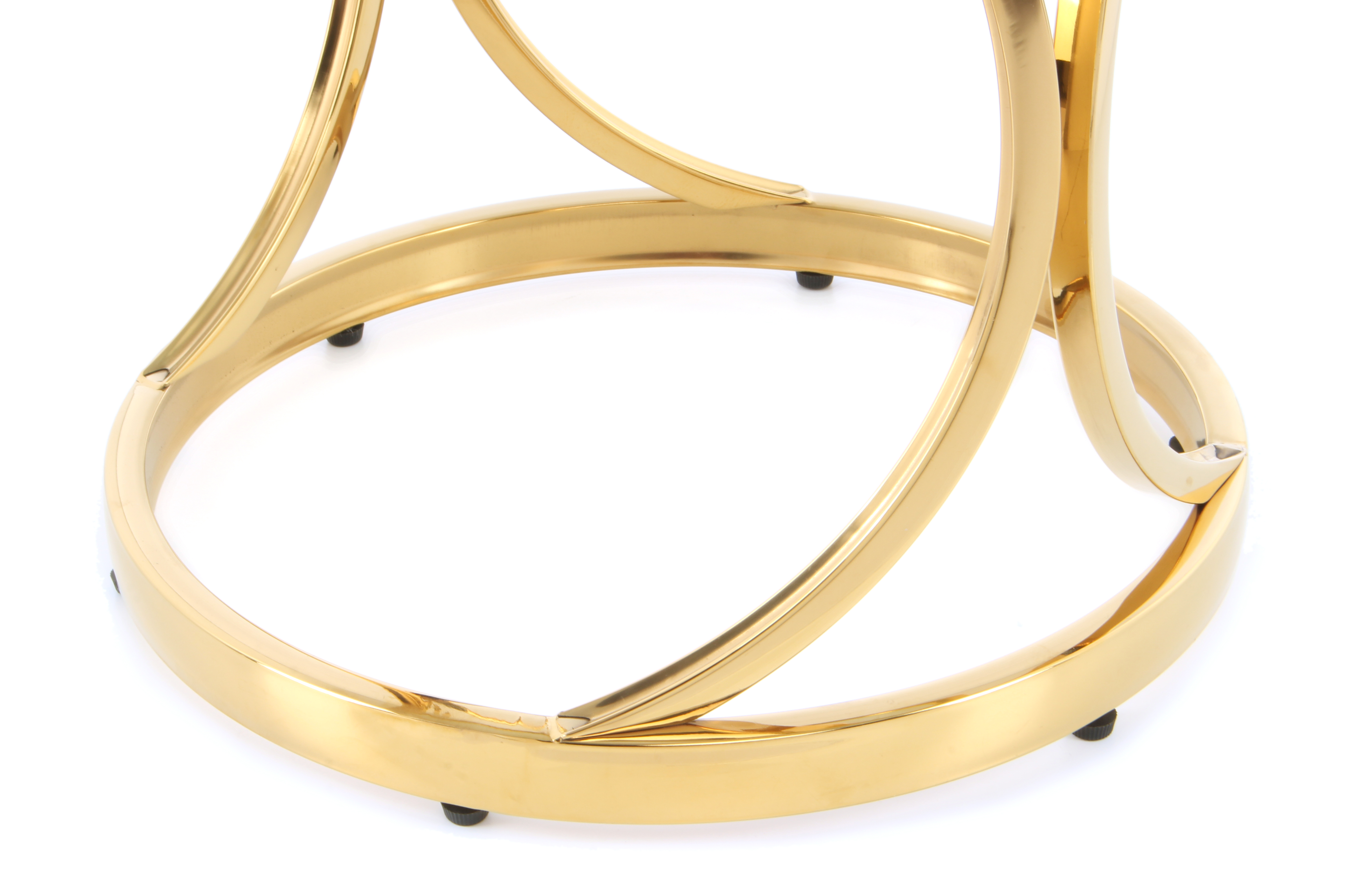 Die Kombination aus dem stilvoll gefärbten Metallgestell und der transparenten Tischplatte gibt diesem Beistelltisch sein elegantes Design. Das abgerundete, sternförmig ausgerichtete Metallgestell überzeugt durch die edle Aufmachung und bringt Eleganz und Glamour in die Umgebung. Die Tischplatte aus Glas fügt sich optisch gut in das Gesamtbild ein bietet gleichzeitig Platz für passende Dekoration oder zum Ablegen von gerade nicht Benötigtem. Mit modernen Einrichtungen sowie Luxus-Einrichtungen oder dem orientalischen Stil lässt sich der Beistelltisch besonders gut kombinieren.