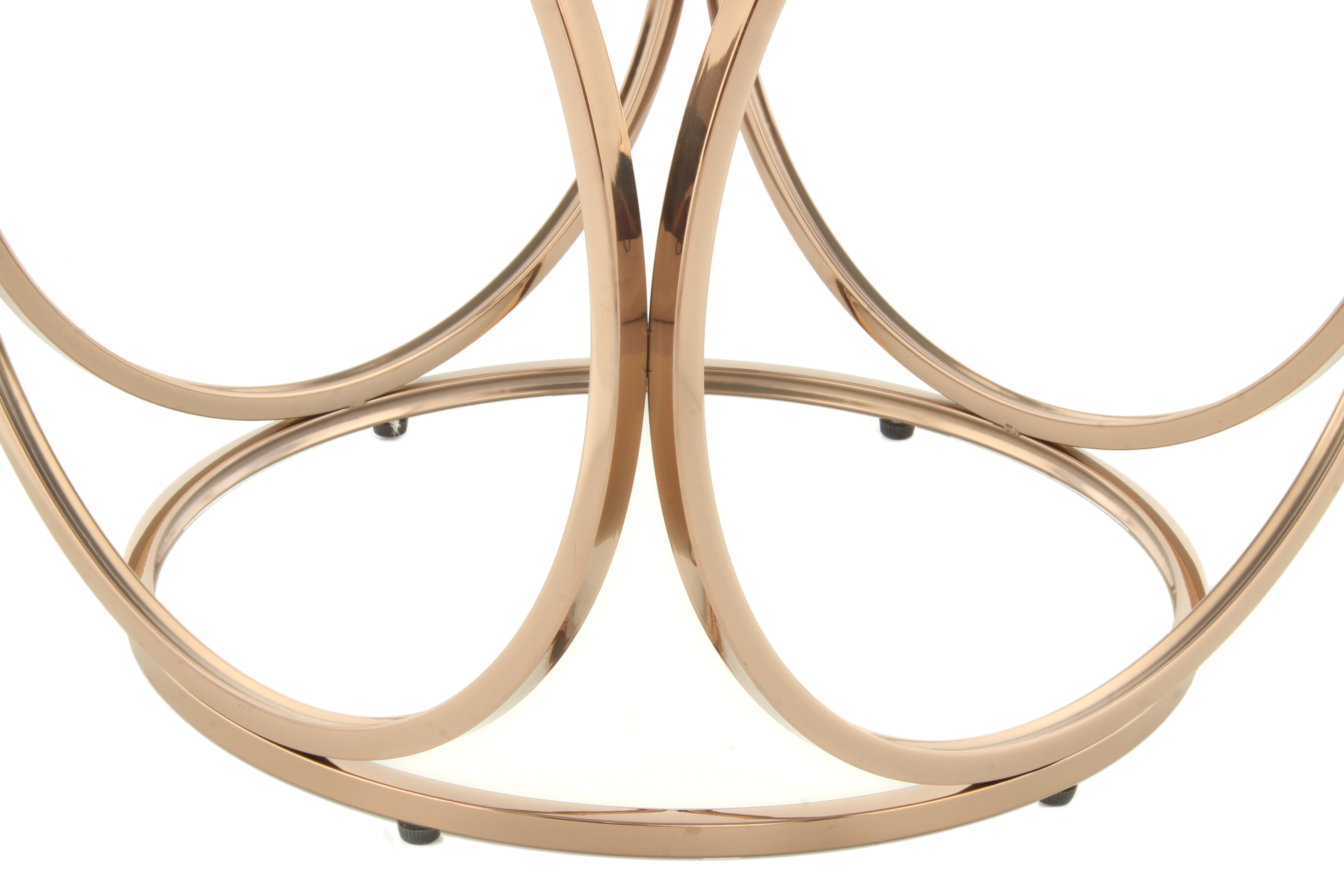 Die Kombination aus dem stilvoll gefärbten Metallgestell und der transparenten Tischplatte gibt diesem Beistelltisch sein elegantes Design. Das abgerundete, sternförmig ausgerichtete Metallgestell überzeugt durch die edle Aufmachung und bringt Eleganz und Glamour in die Umgebung. Die Tischplatte aus Glas fügt sich optisch gut in das Gesamtbild ein bietet gleichzeitig Platz für passende Dekoration oder zum Ablegen von gerade nicht Benötigtem. Mit modernen Einrichtungen sowie Luxus-Einrichtungen oder dem orientalischen Stil lässt sich der Beistelltisch besonders gut kombinieren.