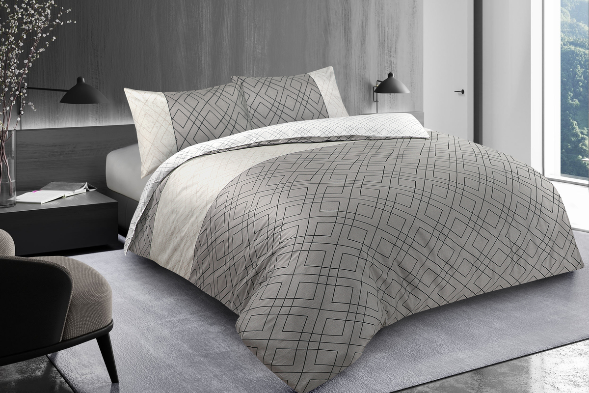Diese attraktive Bettwäsche können Sie in jedem Einrichtungsstil nutzen, egal ob Sie einen modernen oder einen klassischen Stil bevorzugen. Das geometrische Muster mit Retro-Charme bildet in Kombination mit der dezenten Farbgestaltung ein harmonisches Ganzes für jedes Schlafzimmer. Auf der Haut fühlt sich das Material angenehm weich an, sodass ein gemütlicher Schlaf ermöglicht wird. Gleichzeitig ist die Oberfläche pflegeleicht und atmungsaktiv. Das Set beinhaltet einen Bettdeckenbezug sowie ein oder zwei passende Kissenbezüge, abhängig von der gewählten Größe. Durch den praktischen Verschluss sind die Bezüge einfach wechselbar. Die tatsächliche Farbgebung sowie das Design der Bettwäsche können von den Bildern abweichen. Bei der Bettwäsche weisen die Ober- und Unterseite von Decken- und Kissenbezug unterschiedliche Farben und Musterungen auf. Das Muster ist nur auf der Oberseite von Decke und Kissen gedruckt, die Unterseite ist in der Basisfarbe.