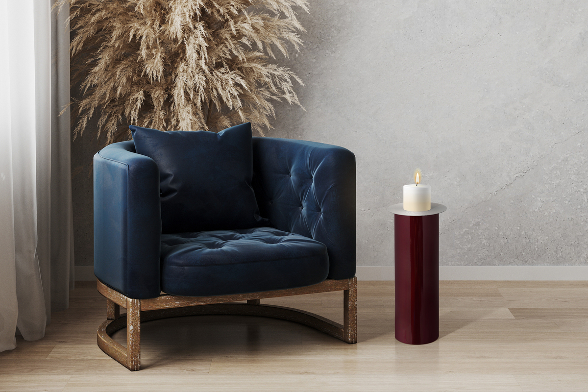 Produktinformationen "Bodenkerzenständer Art Deco 185 Pflaume / Silber"