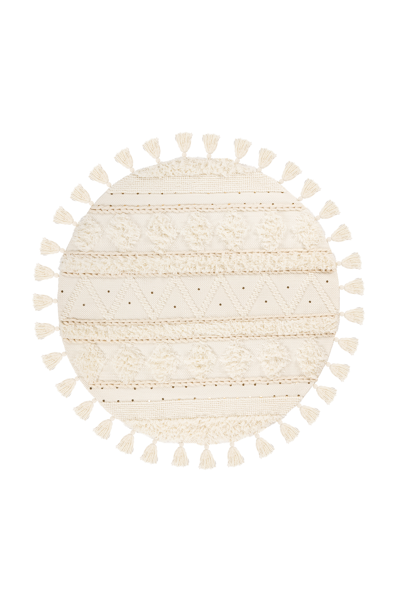 | Besonderheiten: | Handgefertigtes Unikat, Boho-Style, kombinierbar mit Kissen und Hocker/Poufs aus der gleichen Kollektion, Teppich kann ca. bis zu 6cm größer ausfallen bedingt durch Handarbeit und Naturwerkstoffen |
