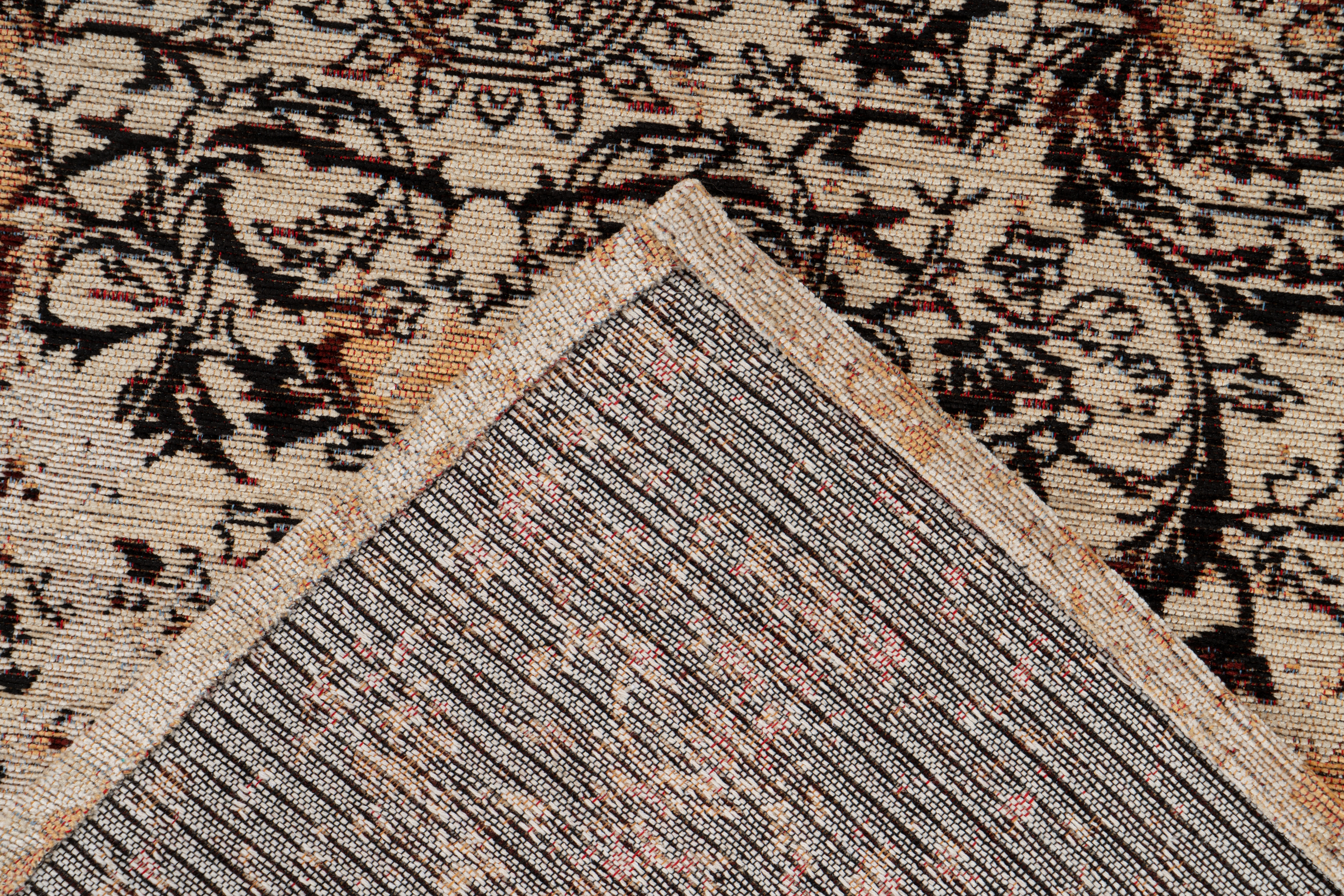 Die außergewöhnlichen Muster im Vintage Stil verleihen dem Flachflorteppich Charakter und machen ihn zu einem Hingucker in jedem Zuhause. Durch die eleganten Verwaschungen und aufeinander abgestimmten Farbverläufe zieht er die Augen Ihrer Besucher auf sich und schafft ein Ambiente zum Wohlfühlen. Kombiniert mit massiven Echtholzmöbeln, verschnörkelten Accessoires oder glamourösen Textilien aus Samt, integriert sich der edle Teppich in ein harmonisches Gesamtbild. Neben der Kombination mit antiken Möbeln kann der Teppich auch in modernen Ess- oder Wohnzimmern in Szene gesetzt werden. Ob einzeln in großen Räumen und Fluren ausgelegt oder unter Möbeln, wie Esstischen und Sofas, ist er in jedem Raum gern gesehen. Nicht nur seine stilvolle Farbgebung und Farbverläufe zeichnen den Vintage Teppich aus, er ist auch besonders pflegeleicht. Durch die hochwertigen Materialien bewährt sich der Teppich in Langlebigkeit und Leichtgewichtigkeit. Kreieren Sie ein stilvolles Ambiente, indem Sie diesen außergewöhnlichen Flachflorteppich in Ihrem Wohnraum platzieren! Die Farbgebung kann je nach Lichteinfall leicht variieren.