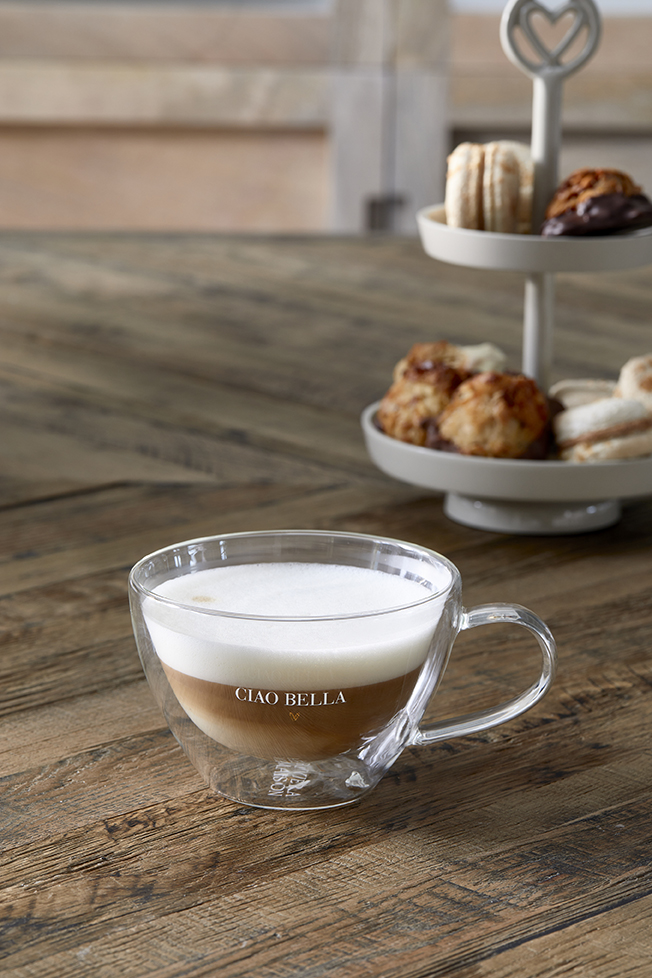 Der Name des Ciao Bella Double Wall Glass L ist Programm: Es handelt sich um ein doppelwandiges Glas mit der Aufschrift "ciao bella". Außerdem ist es mit einem Herz versehen. Das große Teeglas, das sich übrigens auch hervorragend für einen Cappuccino eignet, hält Ihr Getränk lange Zeit schön warm.