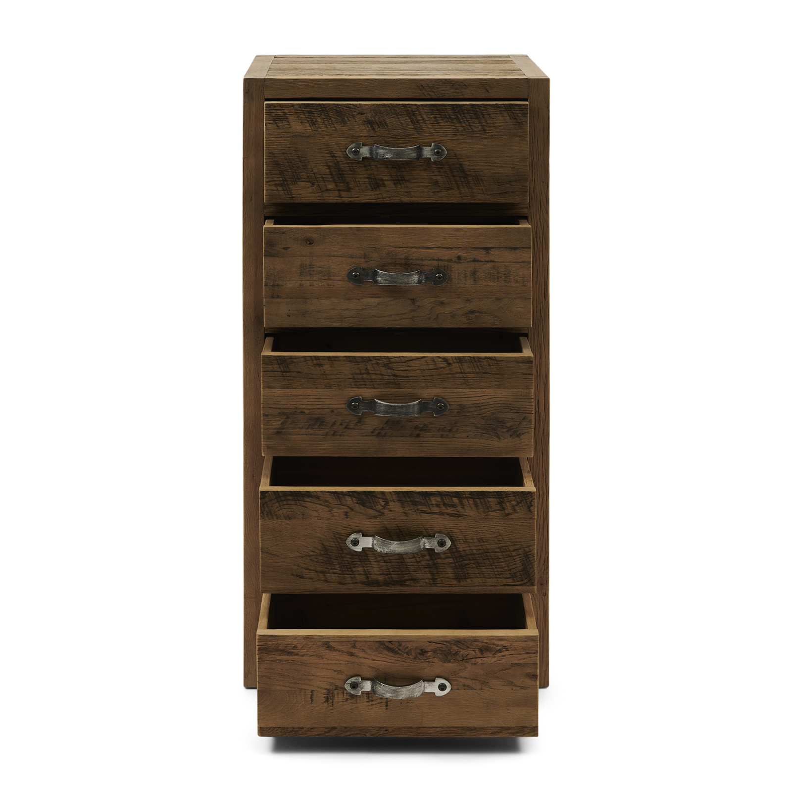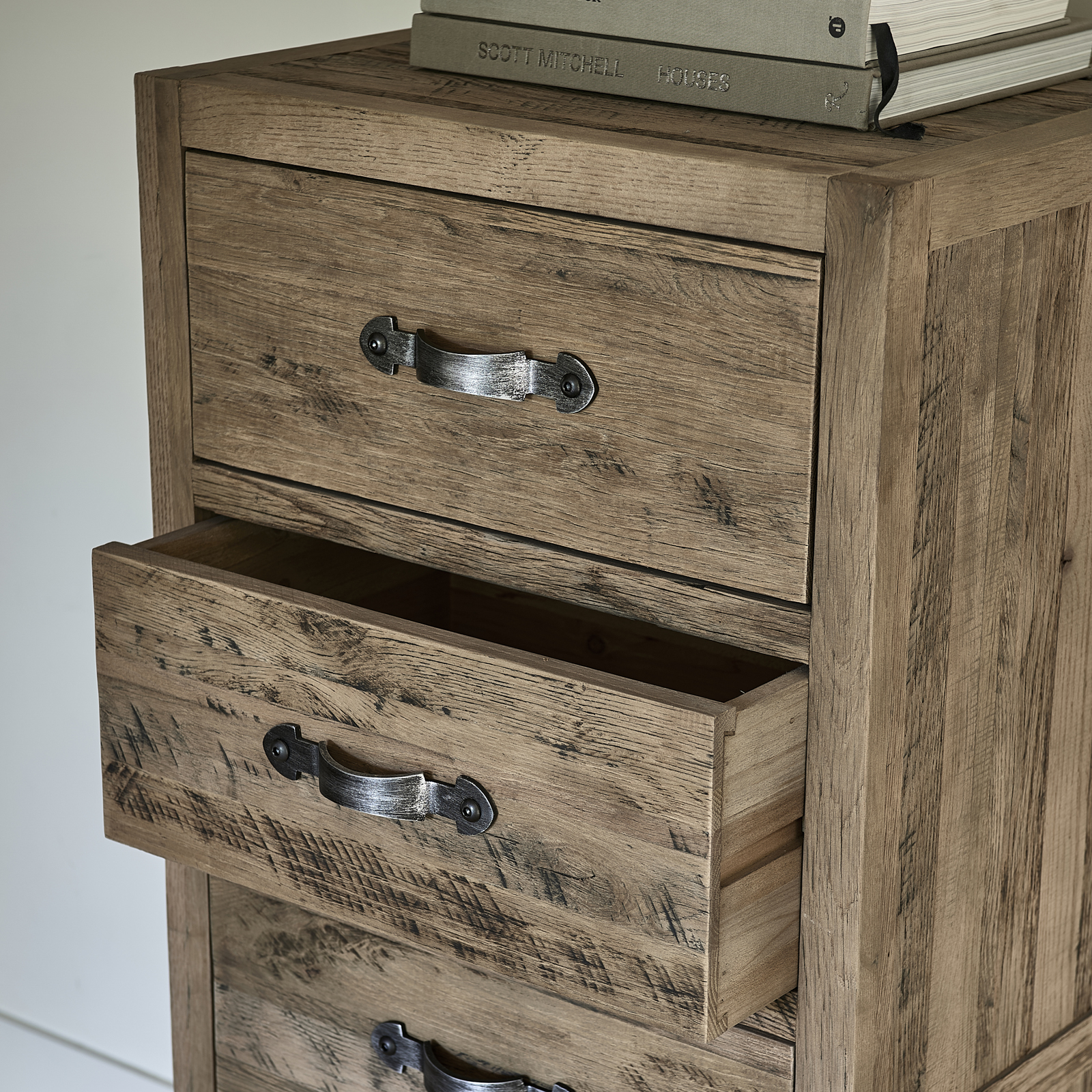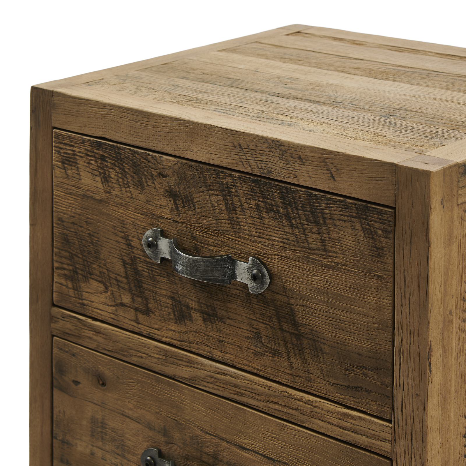 Sie suchen ein Möbelstück mit einer ansprechenden Gebrauchtoptik? Dann ist die Hochkommode Connaught genau das Richtige für Sie. Sie ist aus robustem, altem Eichenholz gefertigt. Das Holz ist schön verarbeitet und hat ein robustes, natürliches Aussehen. Die Schubladen haben klassische, geschwungene Griffe aus Edelstahl mit einer gebürsteten Oberfläche.
