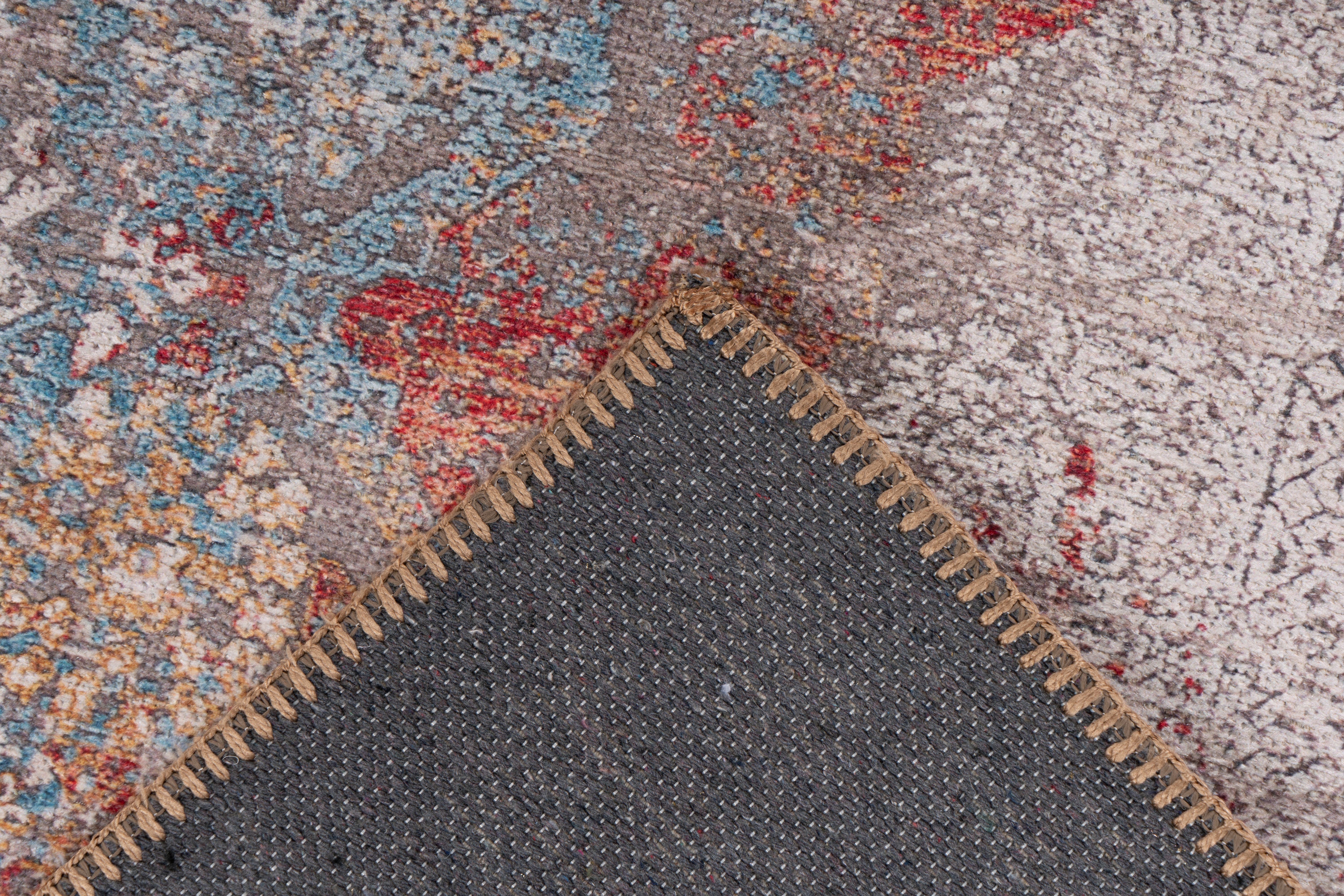 Das stilvolle Print-Design dieses Flachflorteppichs kann mit seinem Vintage-Charakter im orientalischen Stil auf ganzer Linie punkten. Das Design besticht durch attraktive charakteristische Verwaschungen, eine schlichte Farbgebung und orientalische Elemente. Verleihen Sie Ihrem Zuhause einen fernöstlichen Look, indem Sie den stilvollen Teppich mit farbenfrohen Kissen, edlen Wohnaccessoires und glanzvollen Dekoartikeln kombinieren. Besonders gut eignen sich Materialien in Gold, Bronze und Silber oder edle Variationen in Samt, Seide oder Leder. Kreieren Sie ein prunkvolles Gesamtambiente mit stilvollen Highlights, sodass Sie und Ihre Besucher sich rundum wohlfühlen können. Dank seines sehr flachen Flors ist der Teppich besonders leicht und kann einfach umplatziert werden. Das Material macht die Oberfläche pflegeleicht. Verstärkt ist der Flor durch einen robusten Rücken aus Baumwolle. In Räumen mit Fußbodenheizung kann der Teppich ebenso platziert werden wie in Räumen mit herkömmlichen Heizkörpern.