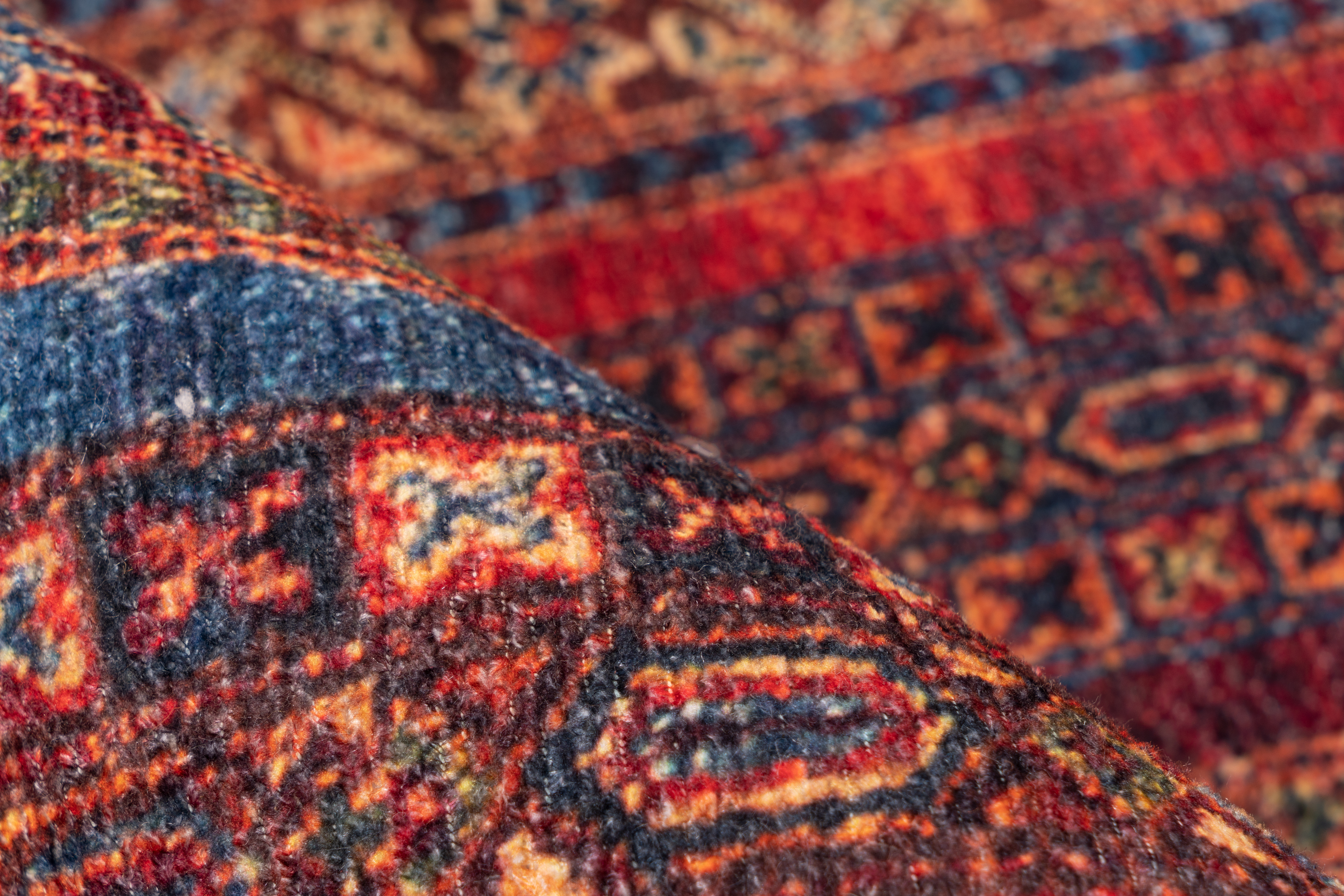 | Besonderheiten: | Flachgewebeteppich, Baumwollrücken, orientalisches Muster in Streifen laufend |