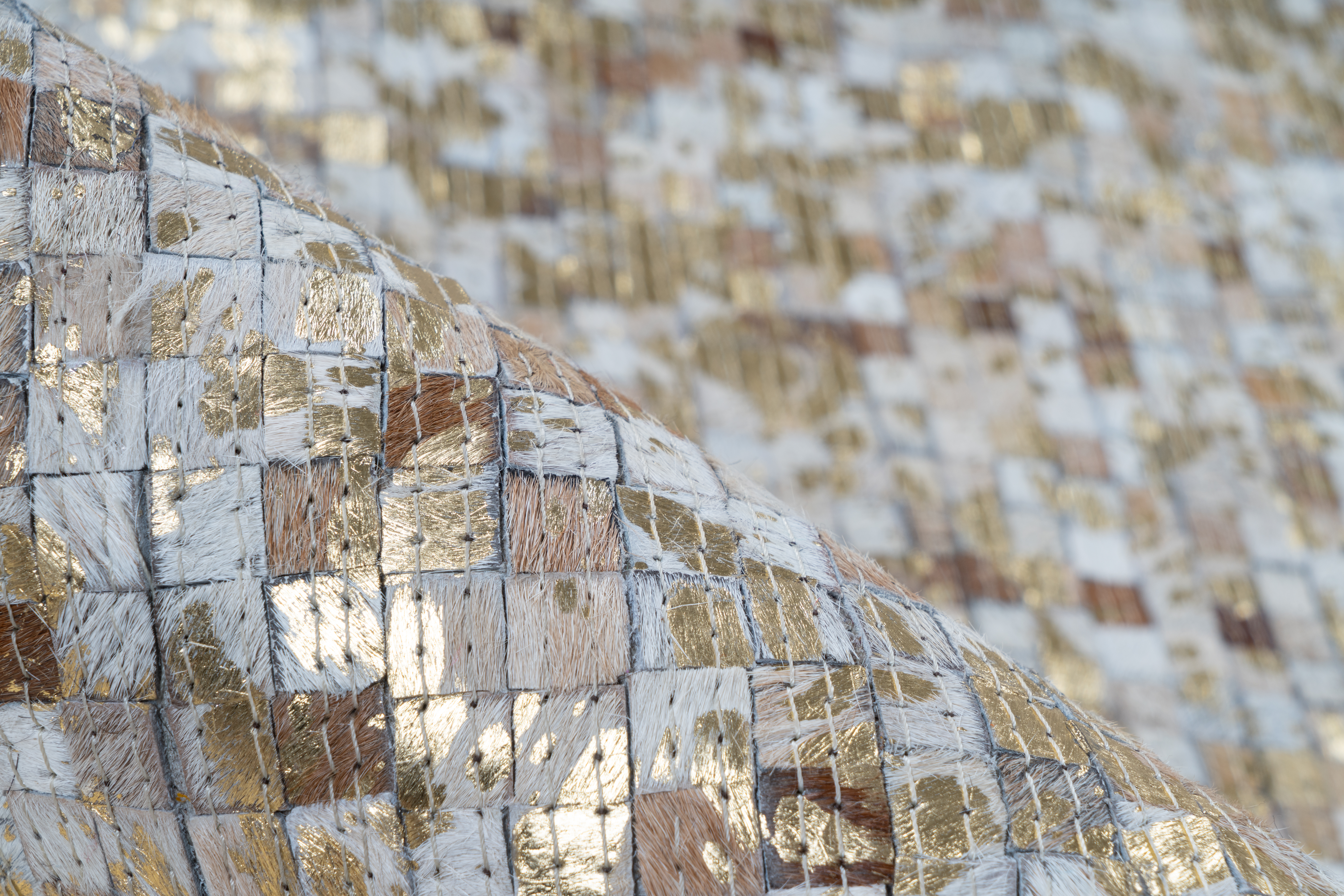 Dieses Teppichmodell hat einige positive Eigenschaften. Der Flor wurde in Handarbeit aus vielen kleinen quadratischen Teilen liebevoll zusammengesetzt und ist ein einzigartiges Unikat. Natürliche Lederstücke in verschiedenen Farbabstufungen erzeugen ein raffiniertes Patchwork-Muster, das schnell ein Hingucker im Raum wird. Metallische Effekte verleihen dem Naturteppich mit Fell einen individuellen und modernen Look, der sich mit verschiedenen Einrichtungsstilen kombinieren lässt. Wohnaccessoires aus Leder oder anderen Naturmaterialien sowie natürliche Farben harmonieren besonders gut mit dem Lederteppich. Dank seiner wärmenden Eigenschaften haben Sie auf diesem Teppich keine kalten Füße mehr. Die Filz-Unterseite ist zudem bodenschonend. Auch in viel genutzten Räumen kann der Lederteppich problemlos eingesetzt werden, denn Leder ist nicht nur pflegeleicht, sondern auch sehr widerstandsfähig und robust. Verschmutzungen lassen sich einfach absaugen, ausschütteln oder gegebenenfalls sanft abbürsten. Bei stärkeren Verschmutzungen kann ein feuchtes Tuch mit Naturseife zur Reinigung verwendet werden. Aufgrund des Naturmaterials und der Handfertigung kann es in Größe, Muster und Farbe zu Abweichungen zum Bild kommen, die bis zu 30 % ausmachen können. Jeder Teppich ist somit ein unverwechselbares Unikat. Das natürliche Fell kann nach einiger Zeit und bei hoher Beanspruchung gegebenenfalls an Haaren verlieren. Ebenso könnte sich der Metallic-Druck unter Umständen ablösen. Dies ist dem Naturprodukt und der Beschaffenheit des Fells geschuldet und kein Produktionsfehler.
