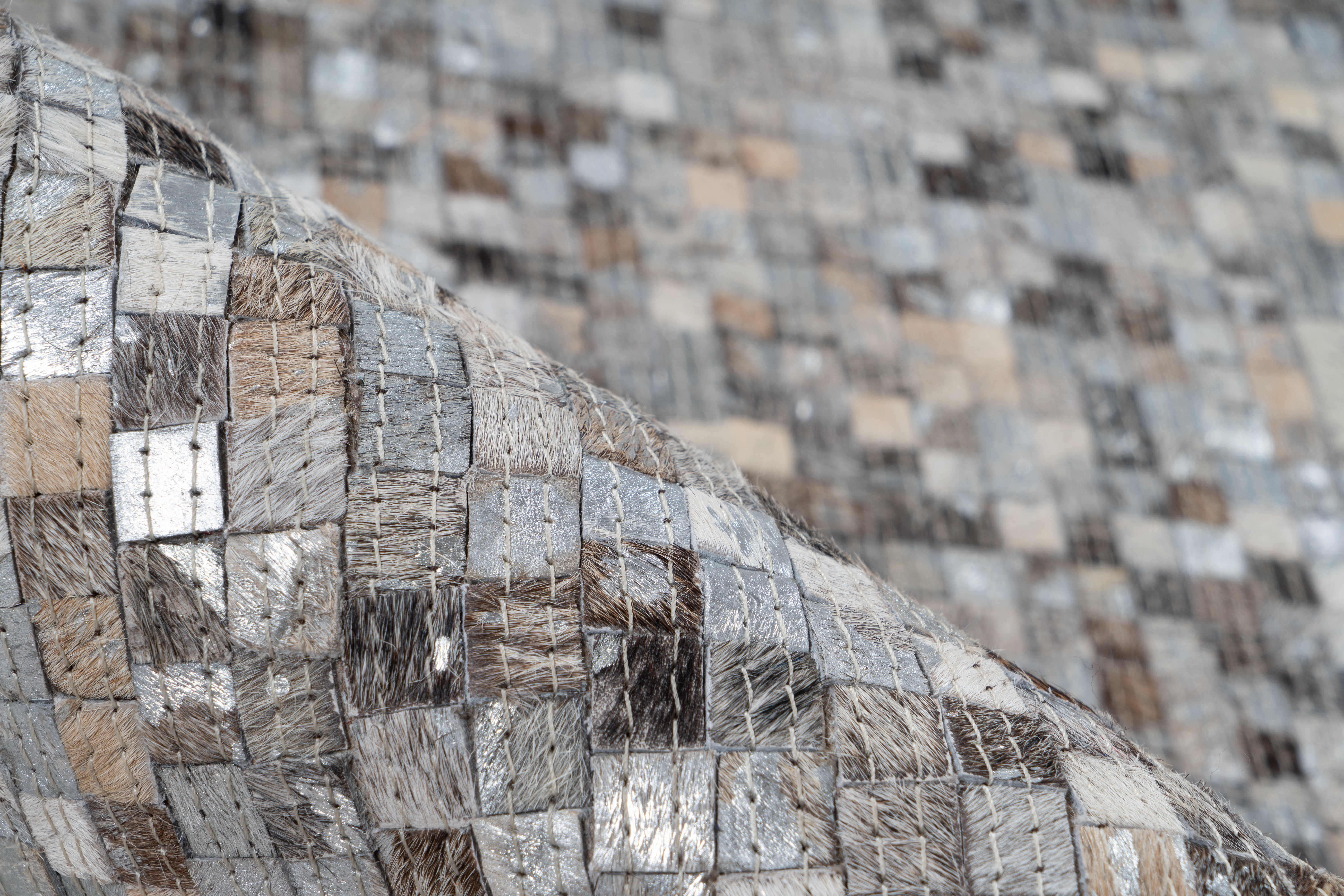 Dieses Teppichmodell hat einige positive Eigenschaften. Der Flor wurde in Handarbeit aus vielen kleinen quadratischen Teilen liebevoll zusammengesetzt und ist ein einzigartiges Unikat. Natürliche Lederstücke in verschiedenen Farbabstufungen erzeugen ein raffiniertes Patchwork-Muster, das schnell ein Hingucker im Raum wird. Metallische Effekte verleihen dem Naturteppich mit Fell einen individuellen und modernen Look, der sich mit verschiedenen Einrichtungsstilen kombinieren lässt. Wohnaccessoires aus Leder oder anderen Naturmaterialien sowie natürliche Farben harmonieren besonders gut mit dem Lederteppich. Dank seiner wärmenden Eigenschaften haben Sie auf diesem Teppich keine kalten Füße mehr. Die Filz-Unterseite ist zudem bodenschonend. Auch in viel genutzten Räumen kann der Lederteppich problemlos eingesetzt werden, denn Leder ist nicht nur pflegeleicht, sondern auch sehr widerstandsfähig und robust. Verschmutzungen lassen sich einfach absaugen, ausschütteln oder gegebenenfalls sanft abbürsten. Bei stärkeren Verschmutzungen kann ein feuchtes Tuch mit Naturseife zur Reinigung verwendet werden. Aufgrund des Naturmaterials und der Handfertigung kann es in Größe, Muster und Farbe zu Abweichungen zum Bild kommen, die bis zu 30 % ausmachen können. Jeder Teppich ist somit ein unverwechselbares Unikat. Das natürliche Fell kann nach einiger Zeit und bei hoher Beanspruchung gegebenenfalls an Haaren verlieren. Ebenso könnte sich der Metallic-Druck unter Umständen ablösen. Dies ist dem Naturprodukt und der Beschaffenheit des Fells geschuldet und kein Produktionsfehler.