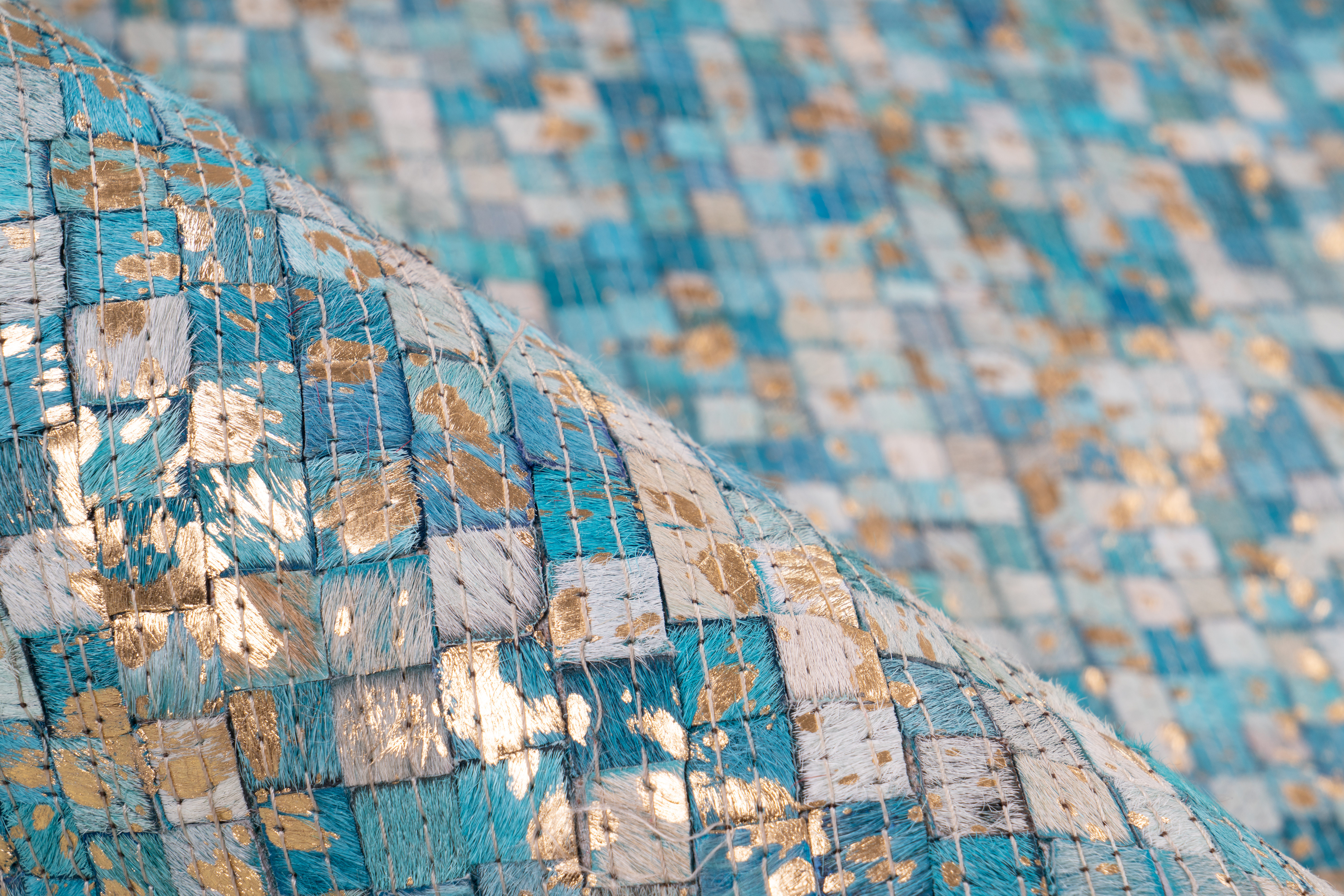Dieses Teppichmodell hat einige positive Eigenschaften. Der Flor wurde in Handarbeit aus vielen kleinen quadratischen Teilen liebevoll zusammengesetzt und ist ein einzigartiges Unikat. Natürliche Lederstücke in verschiedenen Farbabstufungen erzeugen ein raffiniertes Patchwork-Muster, das schnell ein Hingucker im Raum wird. Metallische Effekte verleihen dem Naturteppich mit Fell einen individuellen und modernen Look, der sich mit verschiedenen Einrichtungsstilen kombinieren lässt. Wohnaccessoires aus Leder oder anderen Naturmaterialien sowie natürliche Farben harmonieren besonders gut mit dem Lederteppich. Dank seiner wärmenden Eigenschaften haben Sie auf diesem Teppich keine kalten Füße mehr. Die Filz-Unterseite ist zudem bodenschonend. Auch in viel genutzten Räumen kann der Lederteppich problemlos eingesetzt werden, denn Leder ist nicht nur pflegeleicht, sondern auch sehr widerstandsfähig und robust. Verschmutzungen lassen sich einfach absaugen, ausschütteln oder gegebenenfalls sanft abbürsten. Bei stärkeren Verschmutzungen kann ein feuchtes Tuch mit Naturseife zur Reinigung verwendet werden. Aufgrund des Naturmaterials und der Handfertigung kann es in Größe, Muster und Farbe zu Abweichungen zum Bild kommen, die bis zu 30 % ausmachen können. Jeder Teppich ist somit ein unverwechselbares Unikat. Das natürliche Fell kann nach einiger Zeit und bei hoher Beanspruchung gegebenenfalls an Haaren verlieren. Ebenso könnte sich der Metallic-Druck unter Umständen ablösen. Dies ist dem Naturprodukt und der Beschaffenheit des Fells geschuldet und kein Produktionsfehler.