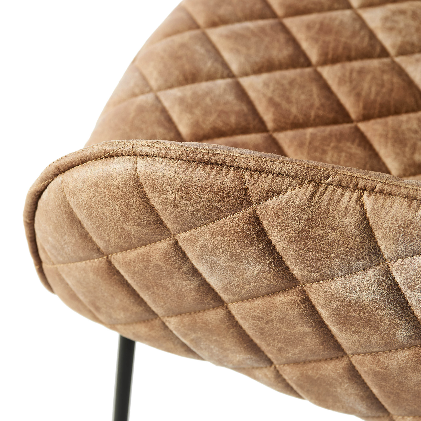 bezogen und der gesamte Stuhl ist gesteppt, so dass winzige, schachbrettartig