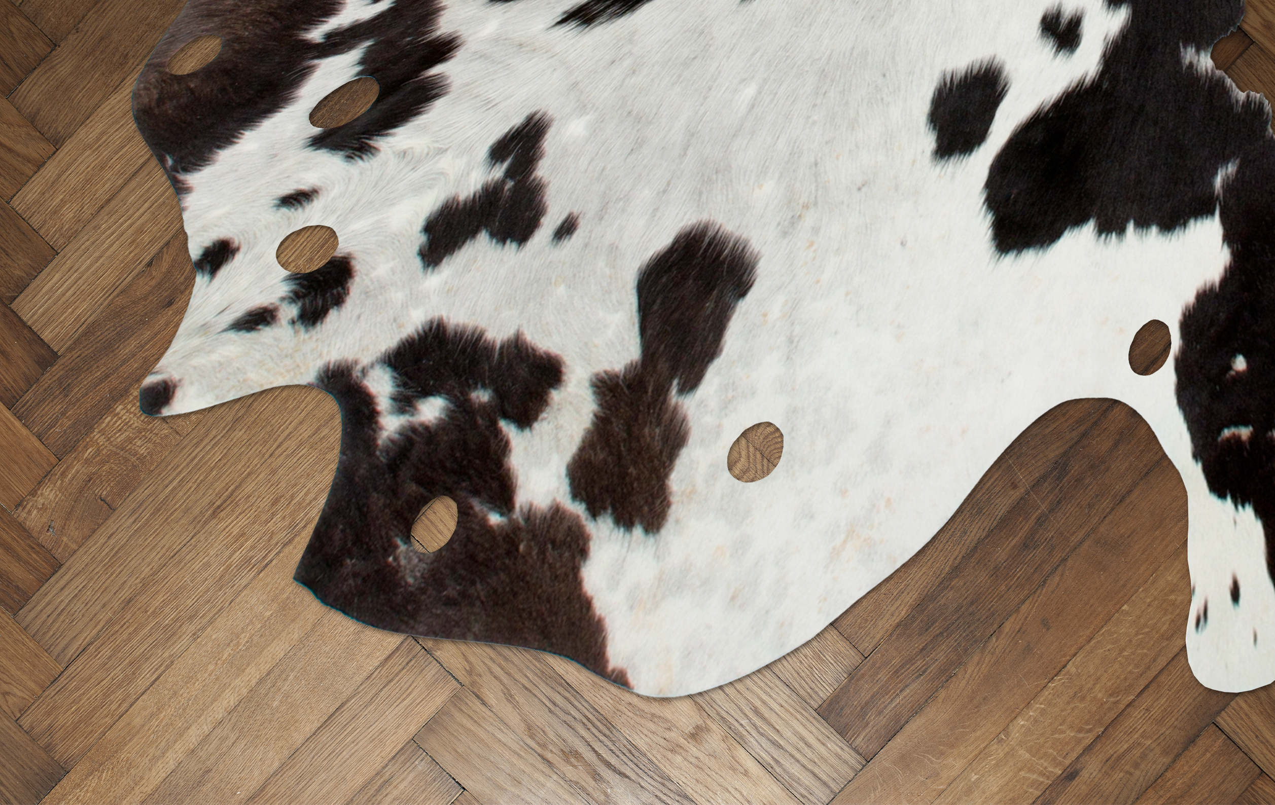 Das Design dieses Lederteppichs zeichnet sich durch das echte Leder und die natürliche Kontur aus. Ansehnliche Ausstanzungen, die in der Form und Größe variieren, verleihen dem Teppich eine einzigartige Optik. In Räumen mit minimalistischer, schlichter Einrichtung und in Kombination mit Holz oder anderem Naturmaterial macht der Lederteppich besonders viel her. Schaffen Sie eine gemütliche und edle Atmosphäre in Ihrem Zuhause, indem Sie den Kuhfellteppich als Bodenbelag, Sitzauflage oder Wandteppich nutzen. Auch in Räumen, die mit einer Fußbodenheizung ausgestattet sind, kann der gemütliche Bodenbelag genutzt werden. Erhöhen Sie den Kuschelfaktor zusätzlich, indem Sie Kissen, Sitzkissen und Decken in Teppichnähe platzieren. Der Teppich besteht zu 100 % aus echtem, hochwertigen Rindsleder, ist besonders pflegeleicht und durch einfaches Absaugen, Ausklopfen oder feuchtes Abwischen problemlos zu reinigen. Der leichte und flache attraktive Lederteppich schont Ihren Fußboden und verleiht dem Raum durch seine Exklusivität und seine Natürlichkeit einen edlen Touch. Bei echtem Rindslederfell handelt es sich um ein Unikat, sodass es in Farbe und Beschaffenheit des Fells zu Abweichungen kommen kann. Dadurch ist jeder Teppich ein einzigartiges Unikat, da keine zwei Felle identisch sind. Gegebenenfalls kann das natürliche Fell nach einiger Zeit und bei hoher Beanspruchung an Haaren verlieren und leicht abfärben.. Dies ist der natürlichen Beschaffenheit des Materials geschuldet und kein Produktionsfehler oder Qualitätsmangel.
