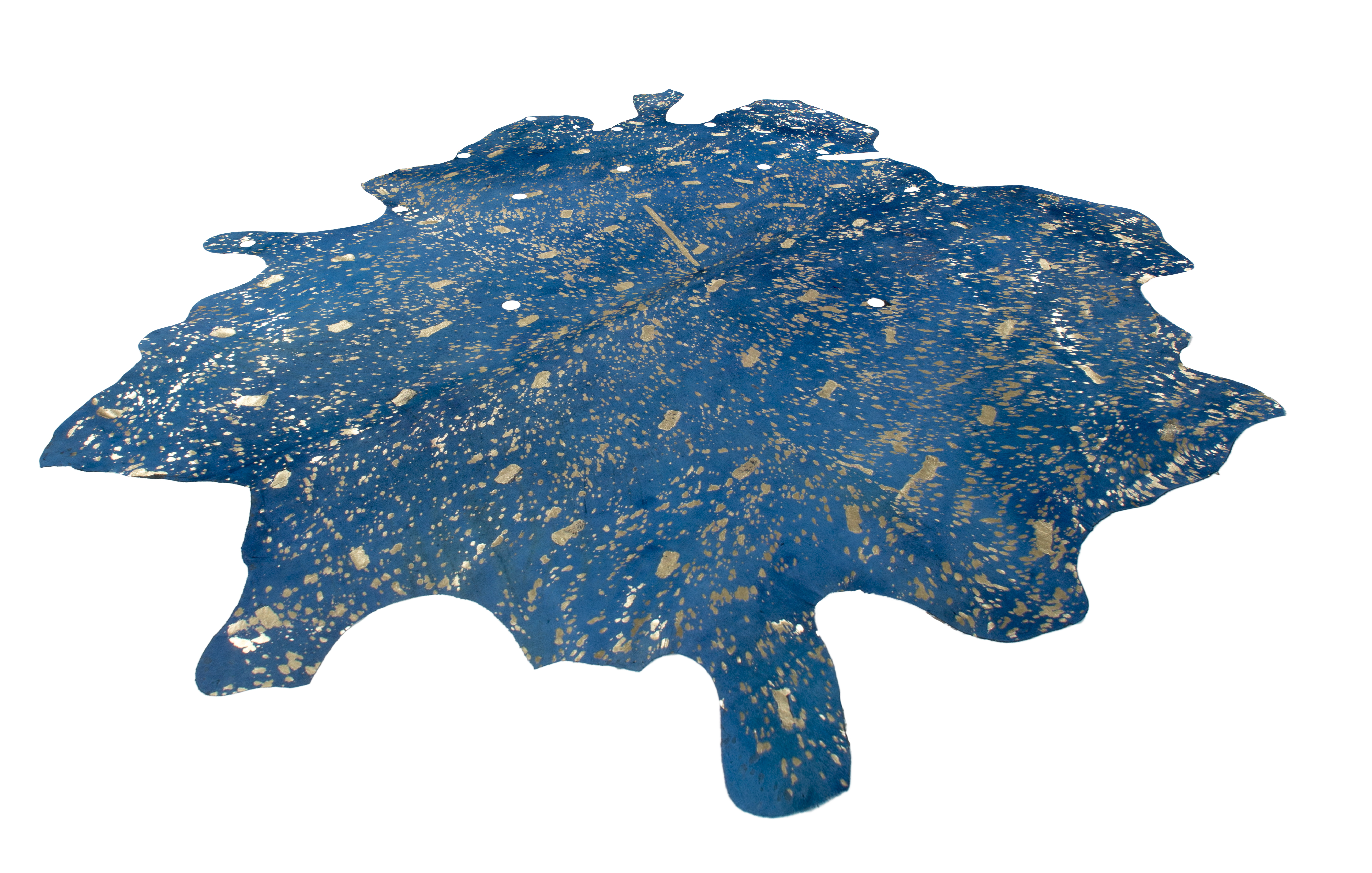 Dieser Naturteppich wurde aus echtem Rindsleder gefertigt und erhält seinen besonderen Charakter durch die moderne Einfärbung, edle metallische Akzente sowie die natürliche Kontur. Stilvolle Ausstanzungen, die in der Form und Größe variieren, verleihen dem Teppich eine einzigartige Optik. Schlichte, minimalistisch eingerichtete Räume können durch dieses Teppichmodell besonders gut aufgewertet werden. Durch das leichte Gewicht des flachen Flors kann das Modell nicht nur als Bodenbelag, sondern auch als Wandteppich oder Sitzauflage verwendet werden. So können Sie Ihr Zuhause ganz nach Ihren Vorstellungen einrichten und den Teppich in seiner Nutzung flexibel variieren. Besonders gut passt das Leder zu anderen natürlichen Materialien wie Holz oder Rattan. Der Gemütlichkeitsfaktor wird durch die Kombination mit schönen Kissen oder Sitzkissen aus Naturmaterialien verstärkt und bringt eine Wohlfühlatmosphäre in den gesamten Raum. Sie erhalten ein einzigartiges Unikat, das durch das Naturmaterial in Beschaffenheit, Struktur, Form und Farbe bis zu 30 % abweichen kann. Das natürliche Fell ist gefärbt und kann nach einiger Zeit und bei hoher Beanspruchung gegebenenfalls an Haaren verlieren und leicht abfärben. Ebenso könnte sich die Metallicfolie unter Umständen ablösen. Dies ist dem Naturprodukt und der Beschaffenheit des Fells geschuldet und kein Produktionsfehler.
