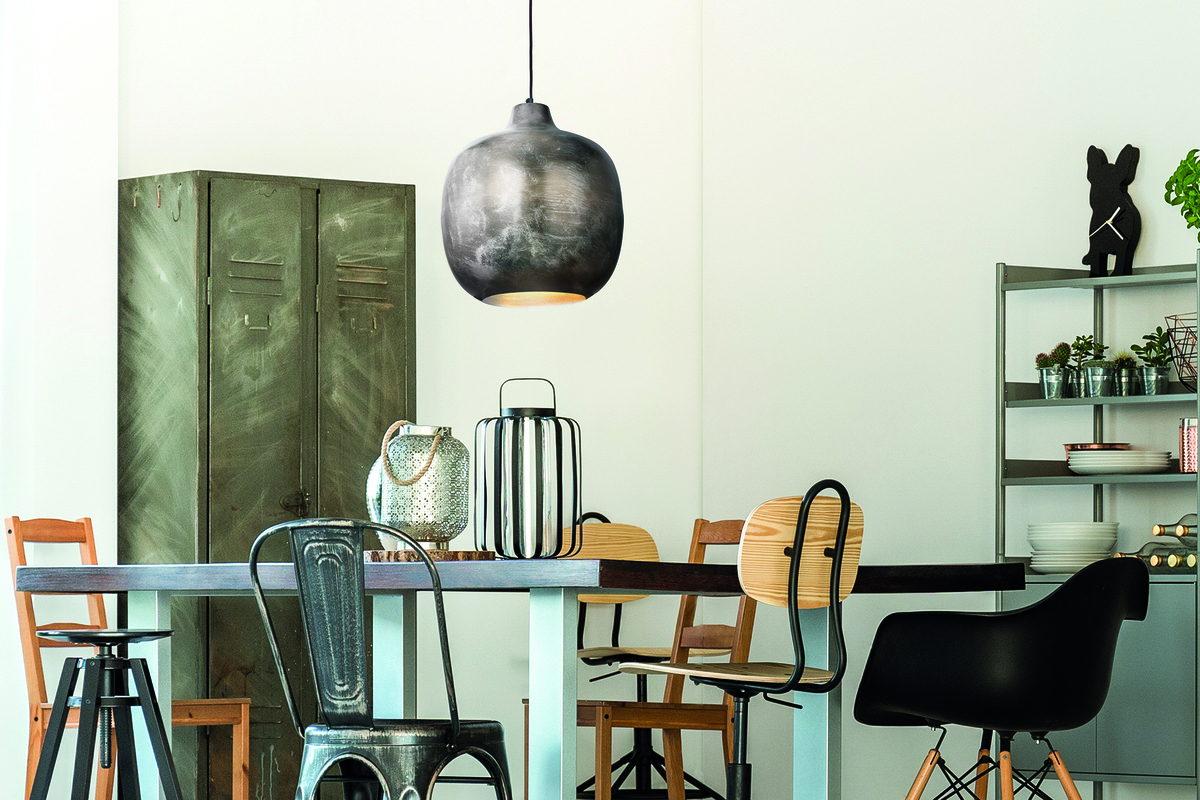 Die stilvolle Pendellampe punktet durch ihren extravaganten industriellen Look. Sie wird aus galvanischem Eisen in aufwändiger Handarbeit gefertigt und bringt einen modernen Touch in Ihr Zuhause. Für die Beleuchtung einzelner Wohnbereiche oder als Blickfang über dem Esstisch: Die Leuchte ist vielseitig einsetzbar. Vervollständigen Sie Ihre Einrichtung im Industrial Design oder setzen Sie einen gekonnten Stilbruch zu edlen Möbeln.
