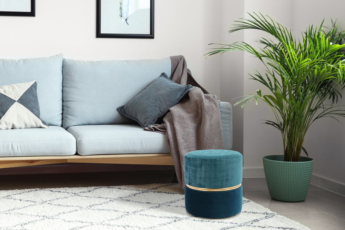 Hohen Sitzkomfort bietet der Hocker durch die weich gepolsterte Sitzfläche und den samtigen Stoffbezug. Dadurch kann das Modell sowohl als Sitzgelegenheit, als auch als Fußhocker oder einfach als Ablage genutzt werden. Egal wie Sie den Hocker nutzen möchten – durch die Kombination der verschiedenen Materialien und Farben wird er schnell zum Blickfang. Eine bodenschonende Nutzung wird durch Gummifüße an der Unterseite des Hocker ermöglicht.