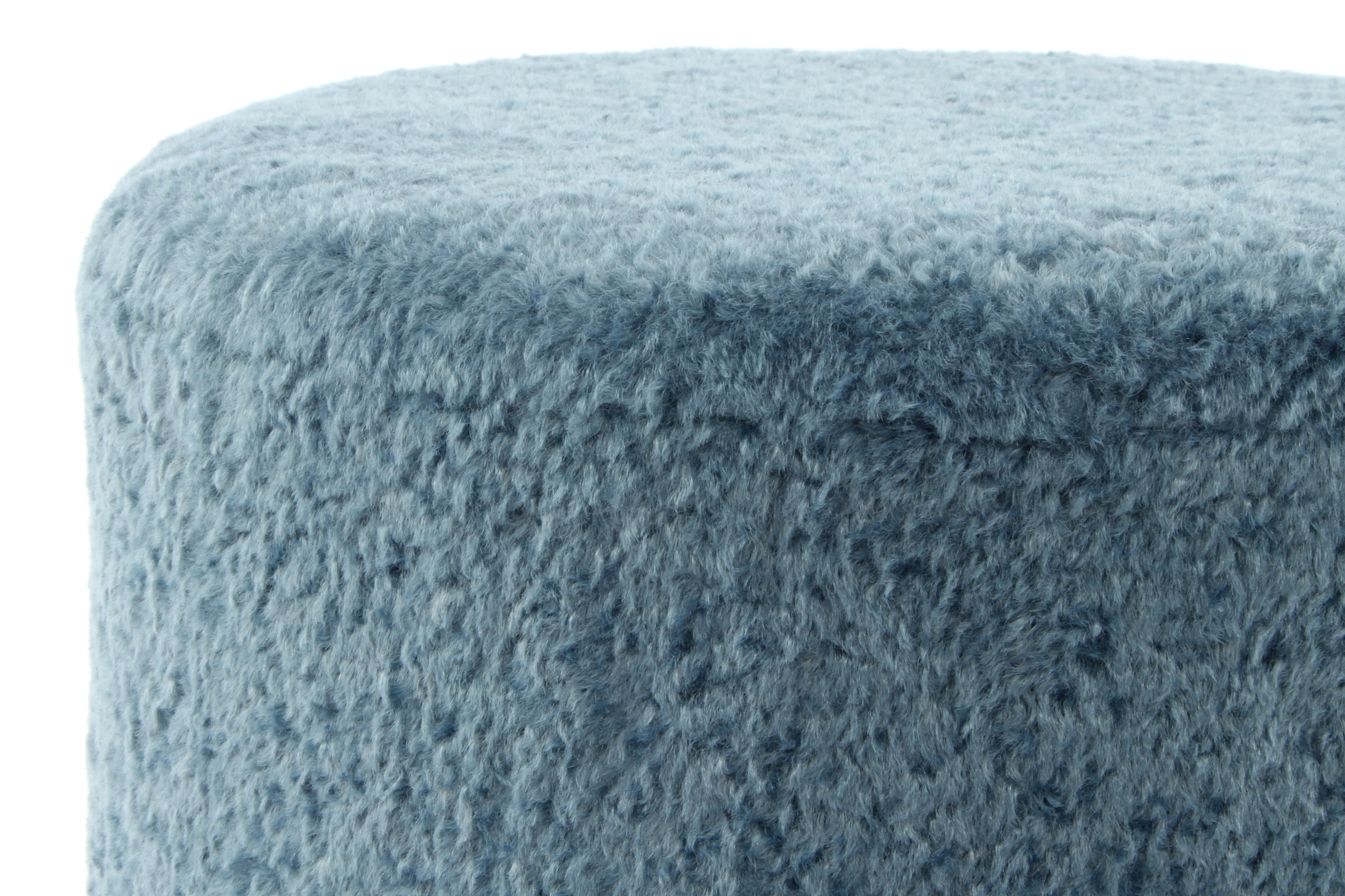 Der Stil dieses Hockers vereint Modernität und Gemütlichkeit miteinander. Nicht nur durch die moderne runde Form, sondern auch durch die weiche Polsterung und den kuscheligen Fellbezug ist der Hocker ein Blickfang und eine bequeme Sitzgelegenheit. Für eine stilvolle Optik sorgt der elegante Metallfuß, der dem Hocker außerdem einen besonderen Charakter verleiht. Integrieren Sie den Hocker in Ihre Wohnzimmereinrichtung oder nutzen Sie ihn als praktische Sitzgelegenheit im Eingangsbereich oder im Schlafzimmer. Der zum Teil handgefertigte Hocker sorgt in jedem Raum für eine wohnliche und gemütliche Atmosphäre. Das Möbelstück kann in seiner tatsächlichen Farbgebung von den Bildern abweichen. Durch unterschiedlichen Lichteinfall und verschiedene Streichrichtungen des Stoffbezuges können unterschiedliche Farbnuancen entstehen.