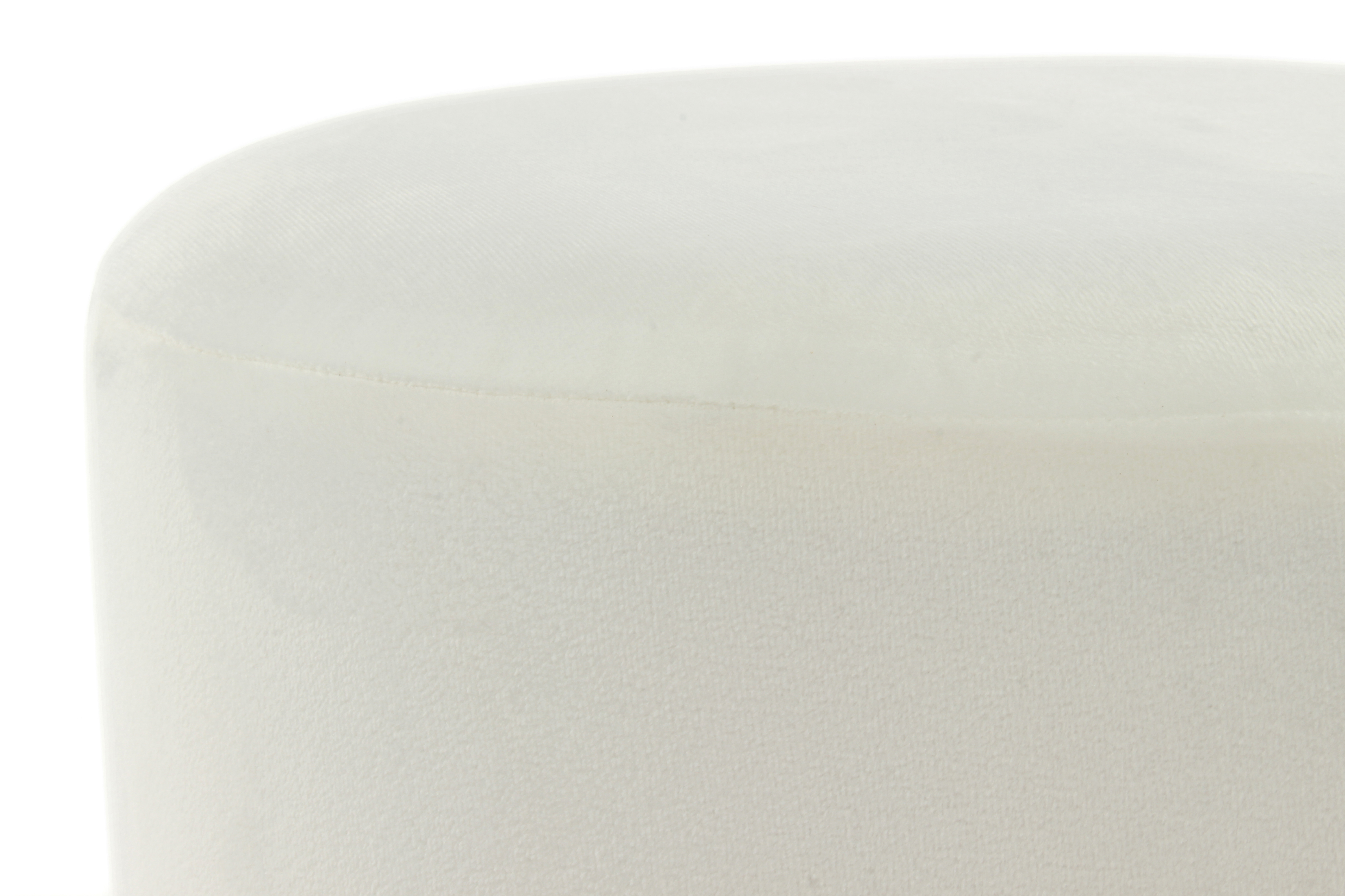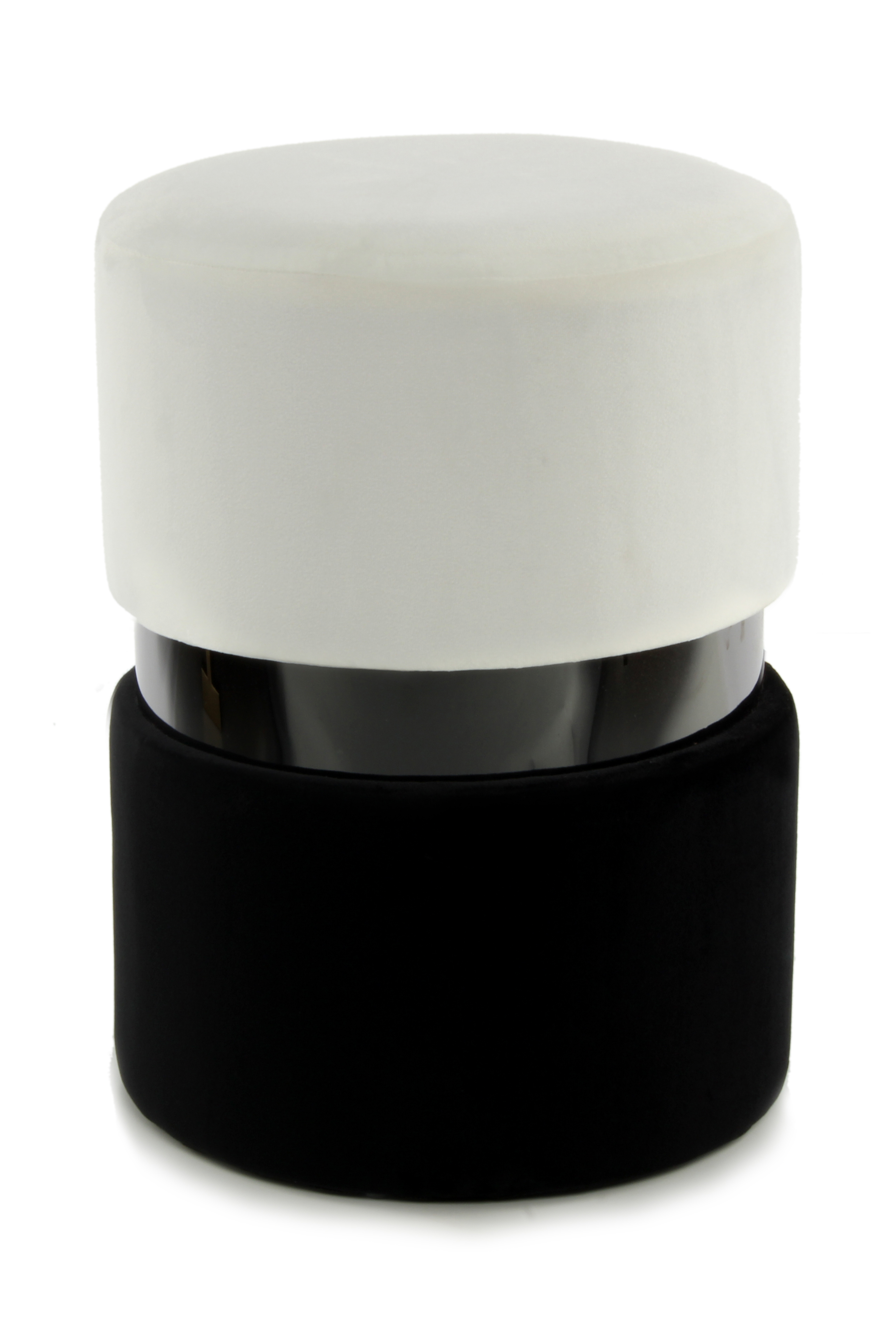 Dieser Hocker vereint eine moderne runde Form mit einer zeitgemäßen zweifarbigen Farbgebung, die durch einen eleganten Metallring optisch voneinander getrennt werden. Die glamouröse Optik wird durch den samtweichen Stoffbezug intensiviert.