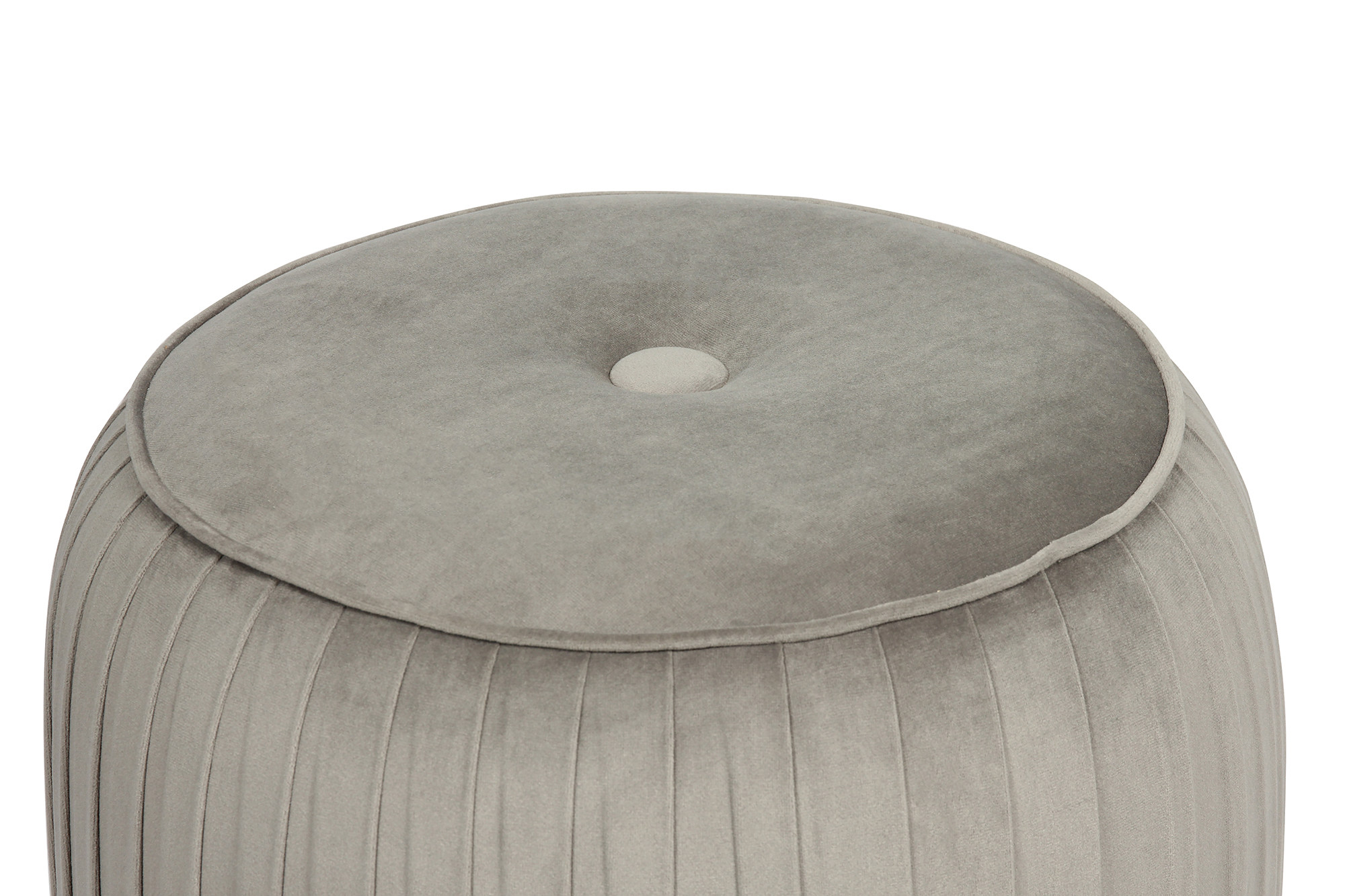 Dieser wunderschöne runde Hocker besitzt einen samtigen Stoffbezug aus Polyester. Die gesteppten Ziernähte sorgen für einen