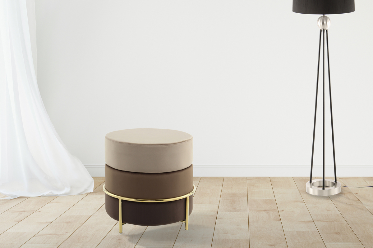 Dieser runde Hocker bietet durch die weiche Haptik und den edlen Stoffbezug angenehmen Sitzkomfort. Nicht nur optisch ist der Sitzpouf ein ansehnlicher Einrichtungsgegenstand. Das zeitlose und dennoch auffällige Design mit eleganten Metallelementen macht den Hocker zum Hingucker in jedem Raum und bringt Eleganz und ein Wohlfühlcharakter mit sich. Egal, wo Sie den Hocker hinstellen – er wird schnell zum Hingucker in ihrem Wohnraum.