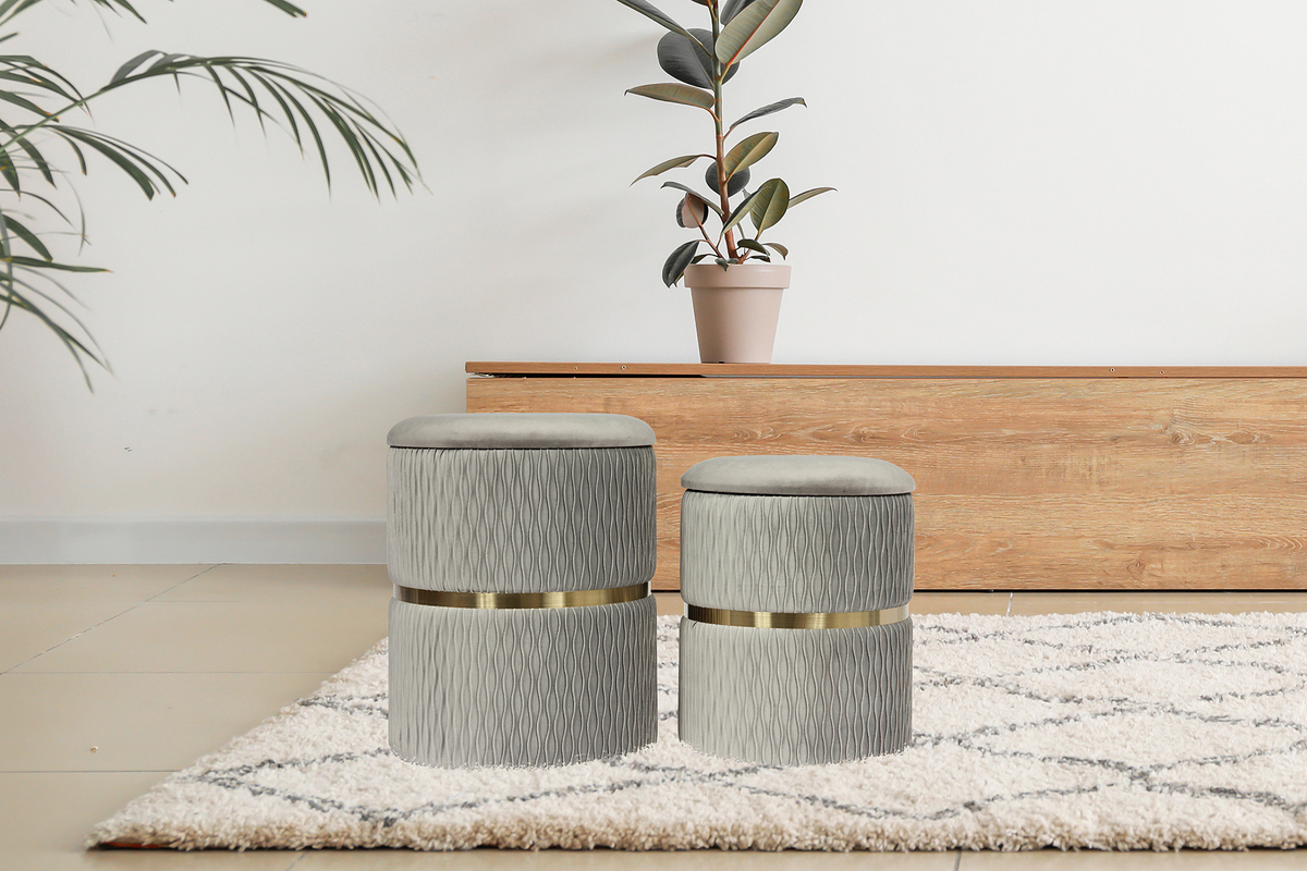auch auf eine stilvolle Art praktischen Stauraum an. Außerdem sind die Hocker ineinander Stapelbar, wodurch