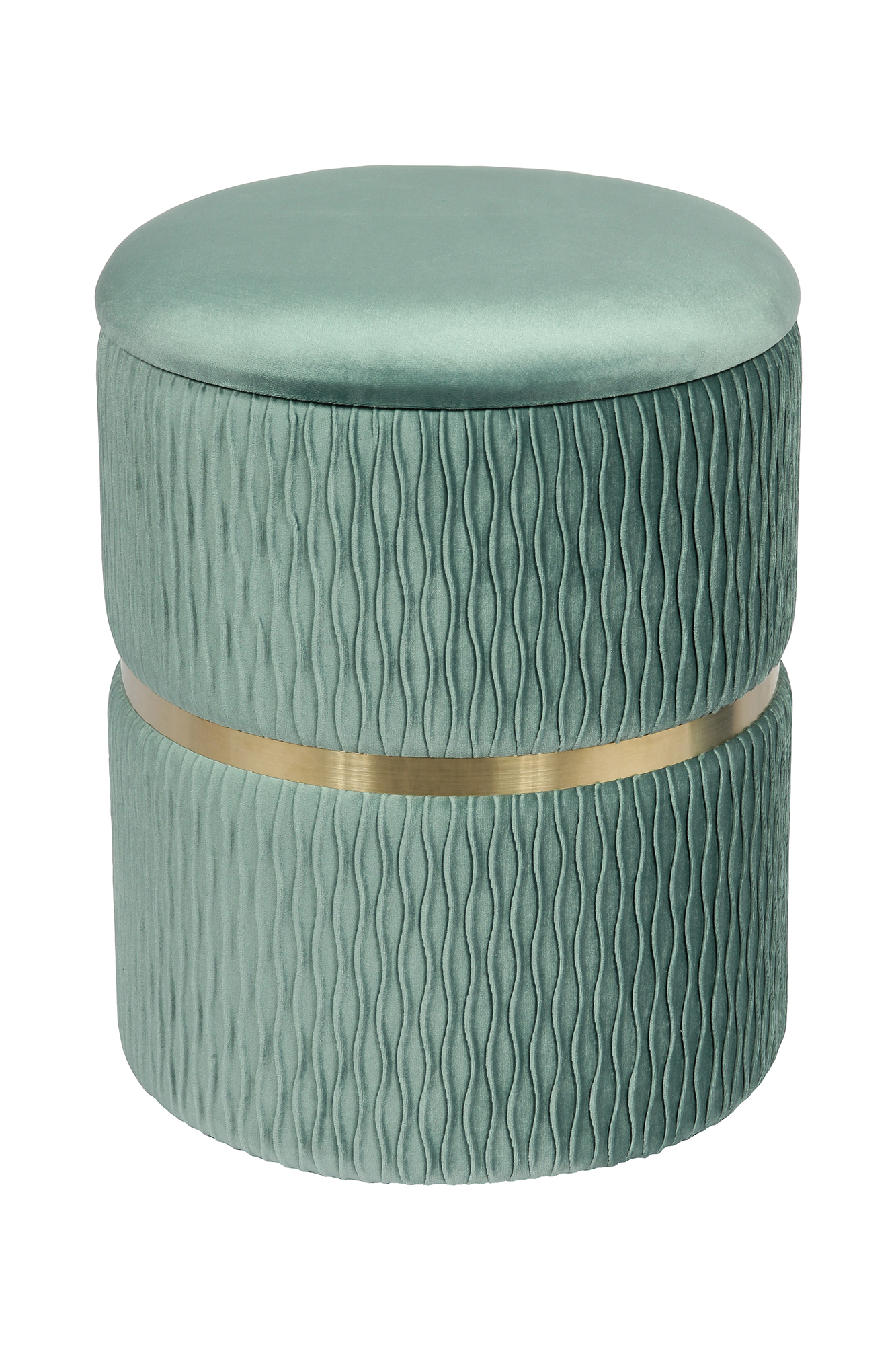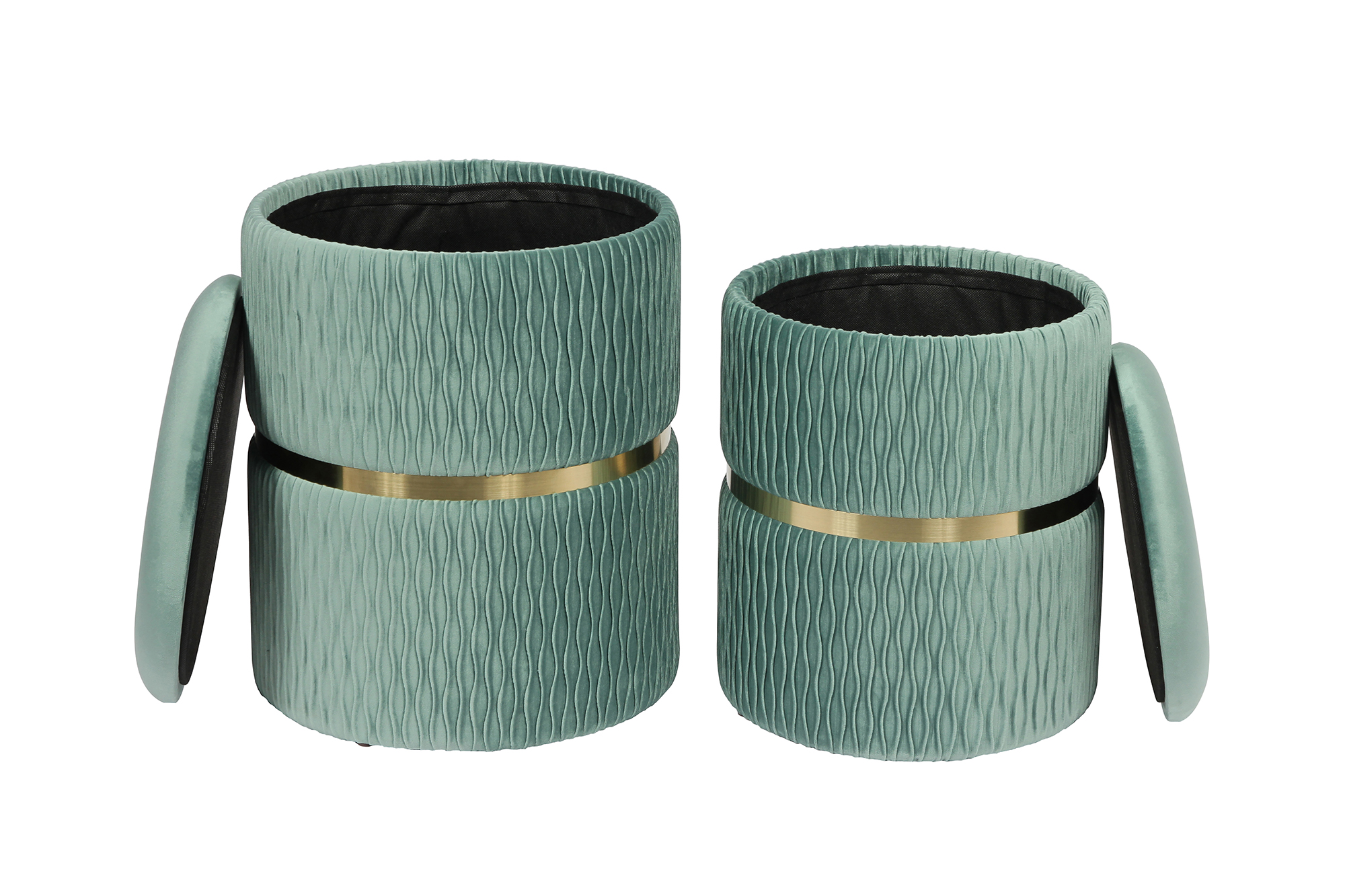 | Besonderheiten: | Samt-Hocker im 2er-Set mit Stauraum, ineinander stapelbar, goldener Ring aus Edelstahl |