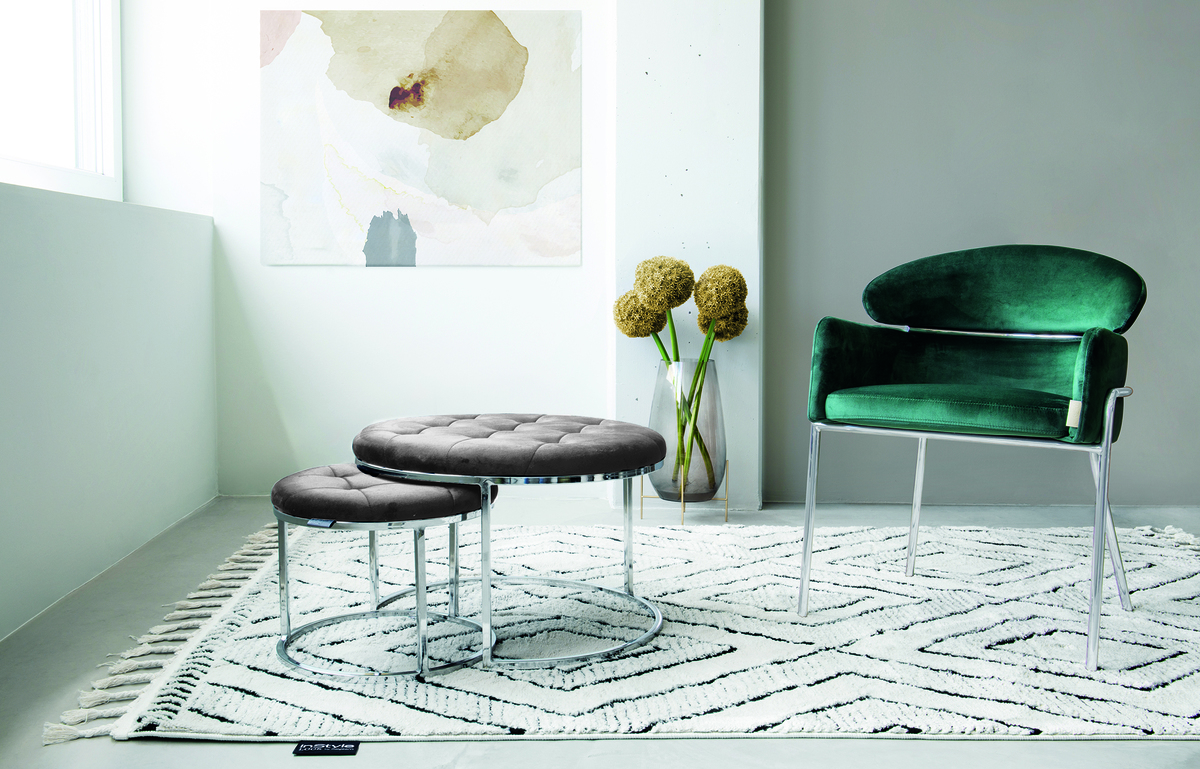| Besonderheiten: | Samt-Hocker im 2er-Set, ineinander schiebbar, gesteppt mit Zierknöpfen, rundes Metallgestell |