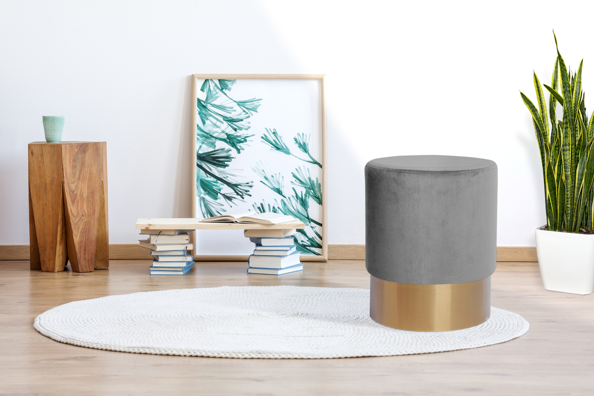 Bringen Sie mit dieser alternativen Sitzgelegenheit Schwung in Ihr Zuhause. Durch seinen weichen Bezug und den Fuß aus Metall ist der runde elegante Hocker ein Blickfang in jedem Zimmer. Er kann vielseitig als Sitzmöglichkeit, Beistelltisch oder Ablage eingesetzt werden und kann dank des leichten Gewichts frei im Raum platziert werden. Das tolle Wohnaccessoire ist eine elegante Ergänzung für jeden Wohnbereich. Das schlichte Design des Hockers lässt sich harmonisch in verschiedene Einrichtungsstile integrieren und wird zum dekorativen Highlight in jedem Raum. Das schöne Design ist mit hohem Sitzkomfort kombiniert. Durch weiches Schaumstoff-Material und einen pflegeleichten Stoffbezug wird das runde Gestell aufgewertet. Sorgen Sie im Schlafzimmer oder im Wohnzimmer mit dem attraktiven Hocker für zusätzliche Gemütlichkeit und unterstreichen Sie das Gesamtkonzept im Raum. Mit passenden Möbeln, Teppichen, Kissen und attraktiver Wohndekoration schaffen Sie Ihre ganz persönliche Wohlfühloase. Das Möbelstück kann in seiner tatsächlichen Farbgebung von den Bildern abweichen. Durch unterschiedlichen Lichteinfall und verschiedene Streichrichtungen des Stoffbezuges können unterschiedliche Farbnuancen entstehen.