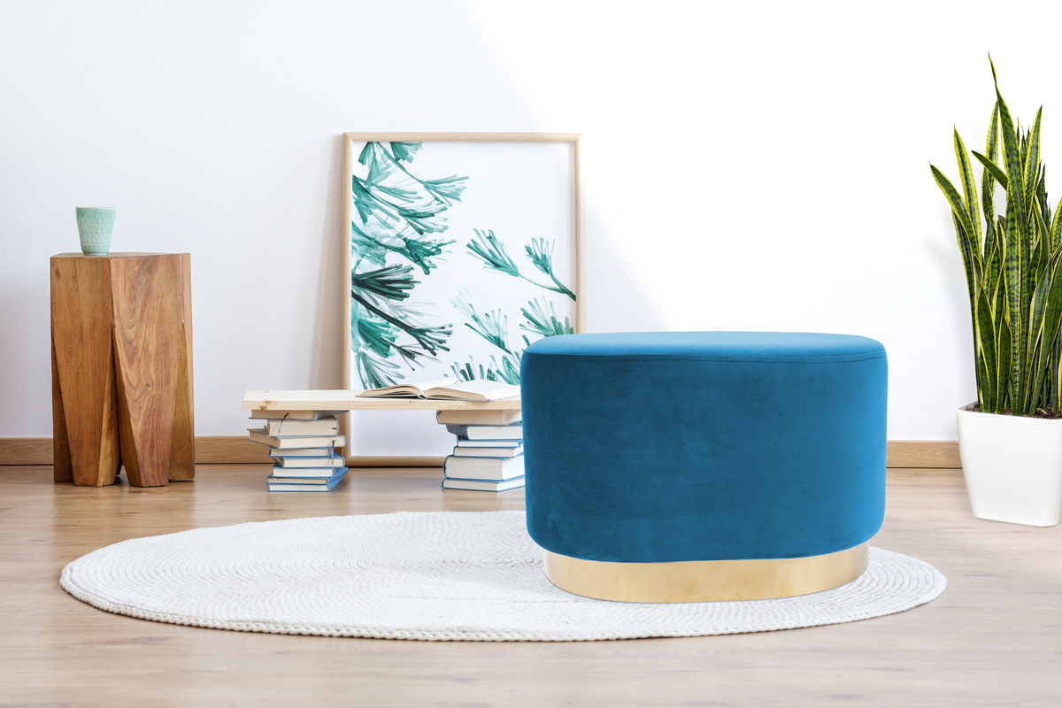 Bringen Sie mit dieser alternativen Sitzgelegenheit Schwung in Ihr Zuhause. Durch seinen weichen Bezug und den Fuß aus Metall ist der ovale elegante Hocker ein Blickfang in jedem Zimmer. Er kann vielseitig als Sitzmöglichkeit, Beistelltisch oder Ablage eingesetzt werden und kann dank des geringen Gewichts frei im Raum platziert werden. Das tolle Wohnaccessoire ist eine elegante Ergänzung für jeden Wohnbereich. Das schlichte Design des Hockers lässt sich harmonisch in verschiedene Einrichtungsstile integrieren und wird zum dekorativen Highlight in jedem Raum. Das schöne Design ist mit hohem Sitzkomfort kombiniert. Durch weiches Schaumstoff-Material und einen pflegeleichten Stoffezug wird das ovale Gestell aufgewertet. Sorgen Sie im Schlafzimmer oder im Wohnzimmer mit dem attraktiven Hocker für zusätzliche Gemütlichkeit und unterstreichen Sie das Gesamtkonzept im Raum. Mit passenden Möbeln, Teppichen, Kissen und attraktiver Wohndekoration schaffen Sie Ihre ganz persönliche Wohlfühloase. Die tatsächliche Farbgebung des Möbelstücks kann von den Bildern abweichen. Durch unterschiedlichen Lichteinfall und verschiedene Streichrichtungen des Stoffbezuges können unterschiedliche Farbnuancen entstehen.
