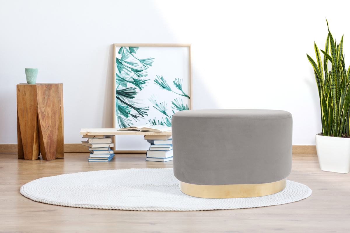 Bringen Sie mit dieser alternativen Sitzgelegenheit Schwung in Ihr Zuhause. Durch seinen weichen Bezug und den Fuß aus Metall ist der ovale elegante Hocker ein Blickfang in jedem Zimmer. Er kann vielseitig als Sitzmöglichkeit, Beistelltisch oder Ablage eingesetzt werden und kann dank des geringen Gewichts frei im Raum platziert werden. Das tolle Wohnaccessoire ist eine elegante Ergänzung für jeden Wohnbereich. Das schlichte Design des Hockers lässt sich harmonisch in verschiedene Einrichtungsstile integrieren und wird zum dekorativen Highlight in jedem Raum. Das schöne Design ist mit hohem Sitzkomfort kombiniert. Durch weiches Schaumstoff-Material und einen pflegeleichten Stoffezug wird das ovale Gestell aufgewertet. Sorgen Sie im Schlafzimmer oder im Wohnzimmer mit dem attraktiven Hocker für zusätzliche Gemütlichkeit und unterstreichen Sie das Gesamtkonzept im Raum. Mit passenden Möbeln, Teppichen, Kissen und attraktiver Wohndekoration schaffen Sie Ihre ganz persönliche Wohlfühloase. Die tatsächliche Farbgebung des Möbelstücks kann von den Bildern abweichen. Durch unterschiedlichen Lichteinfall und verschiedene Streichrichtungen des Stoffbezuges können unterschiedliche Farbnuancen entstehen.