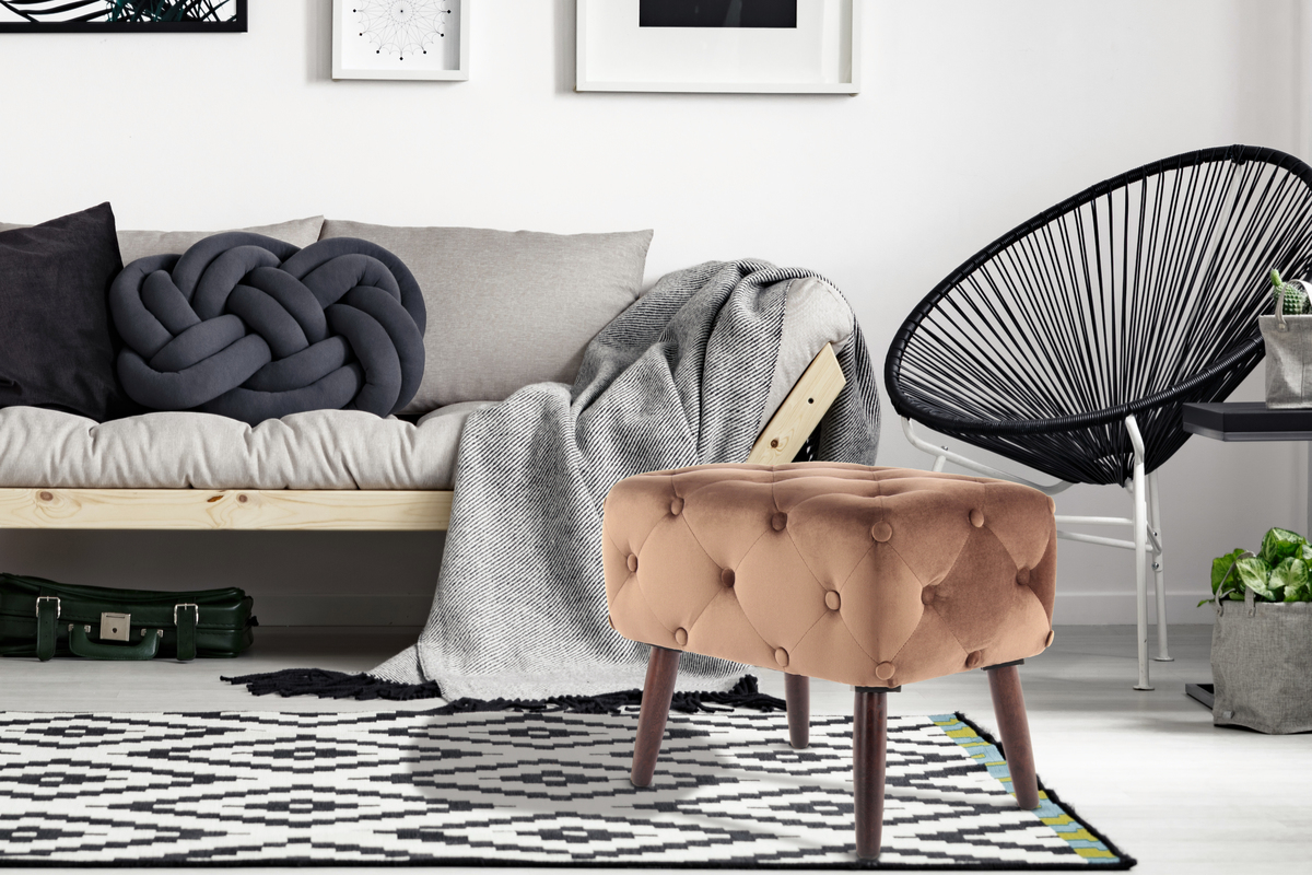 | Besonderheiten: | Gesteppter Hocker mit Holzbeinen, glamouröses Design |