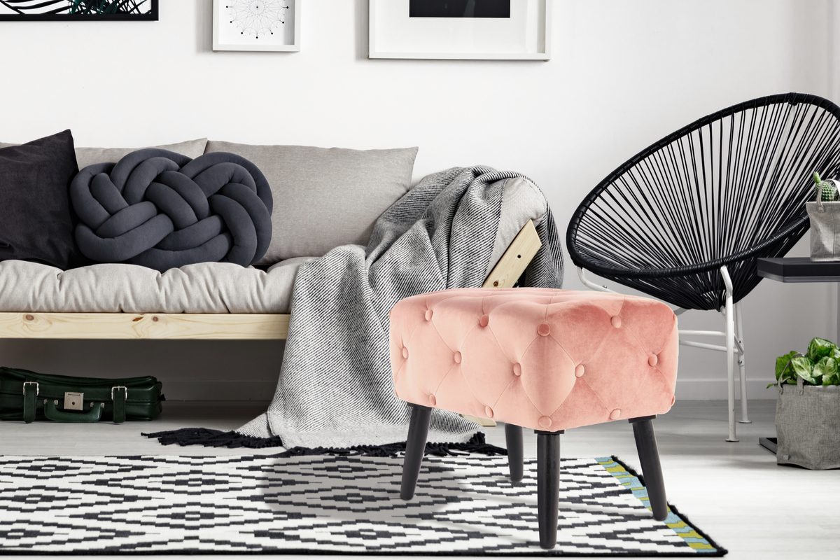 | Besonderheiten: | Gesteppter Hocker mit Holzbeinen, glamouröses Design |