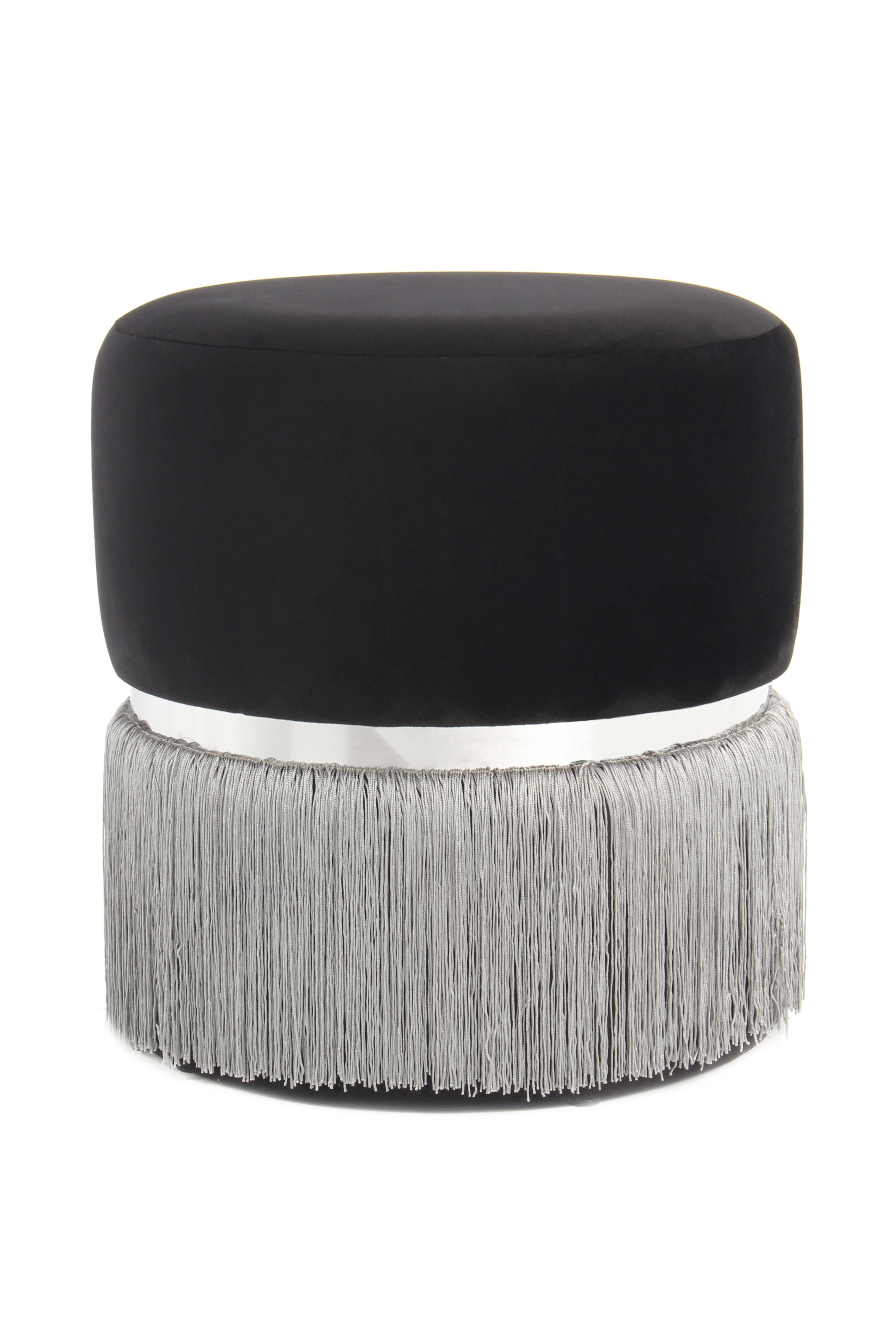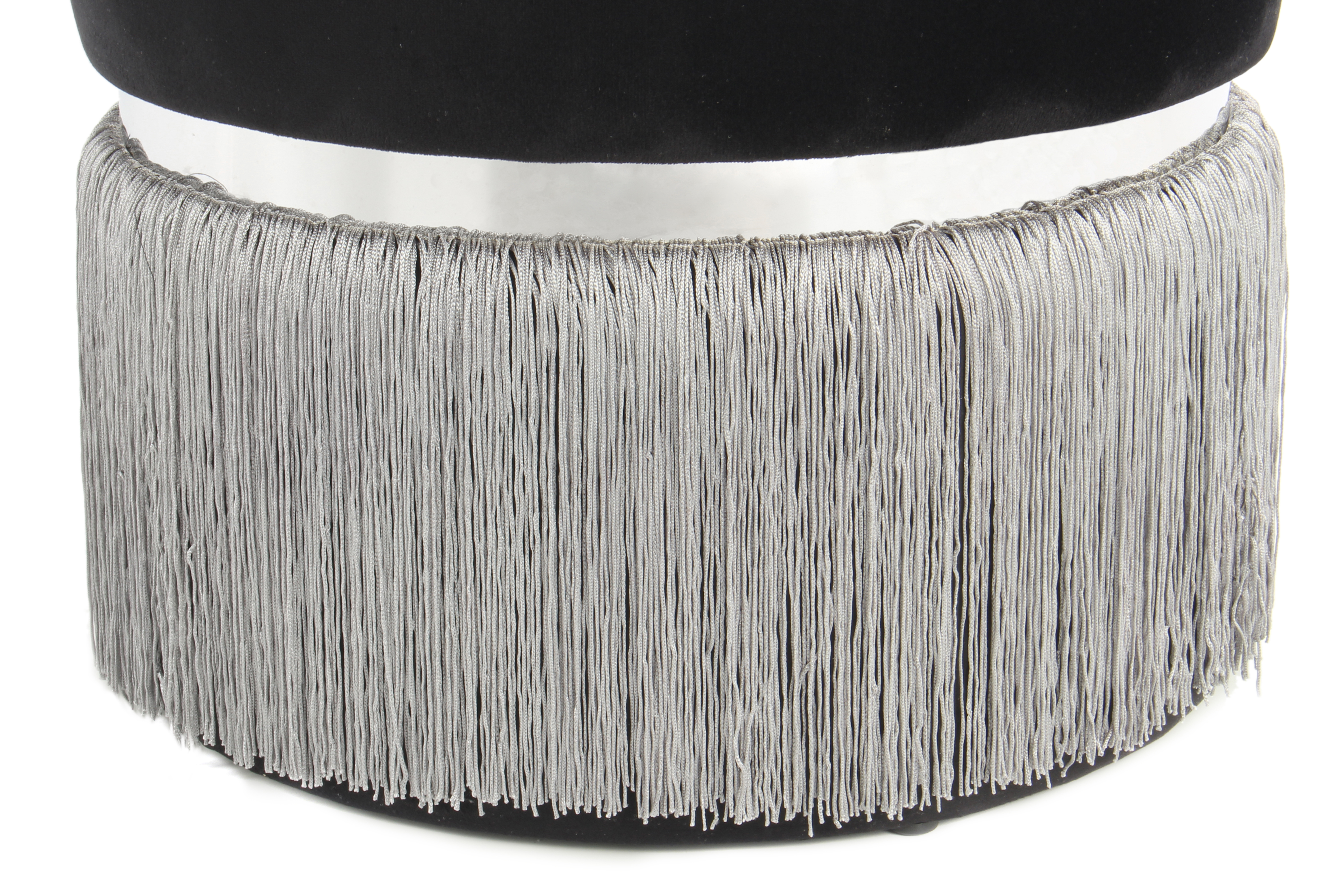 Dieser Hocker ist nicht nur optisch, sondern auch haptisch eine gute Wahl. Die moderne Runde Form mit schlichtem, samtweichem Bezug wird durch Fransen im unteren Bereich stilvoll aufgepeppt. Durch einen eleganten Ring aus Metall entsteht ein harmonischer Übergang zwischen der samtigen Sitzfläche und den langen Fransen.